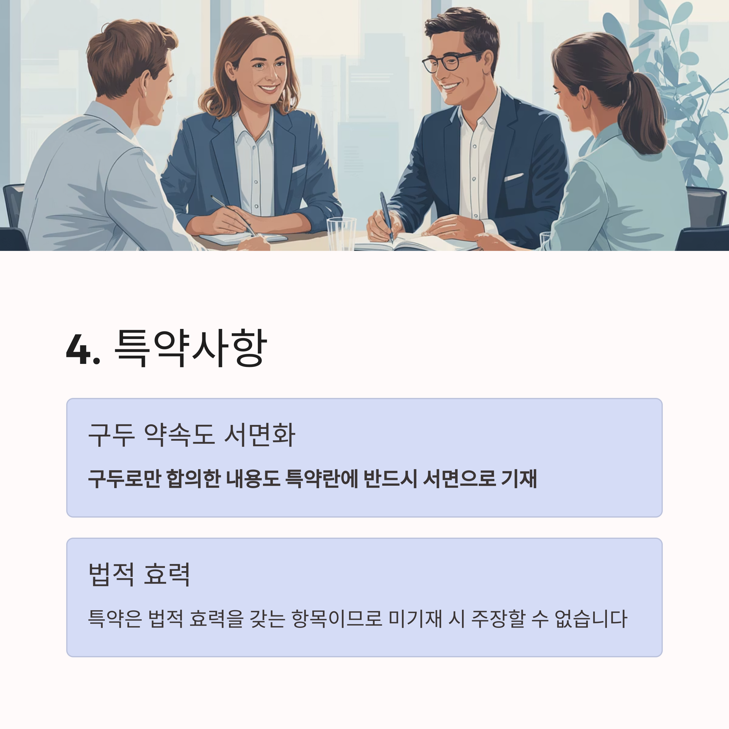 | 특약사항 | 구두 약속 서면화 | 매우 높음 |