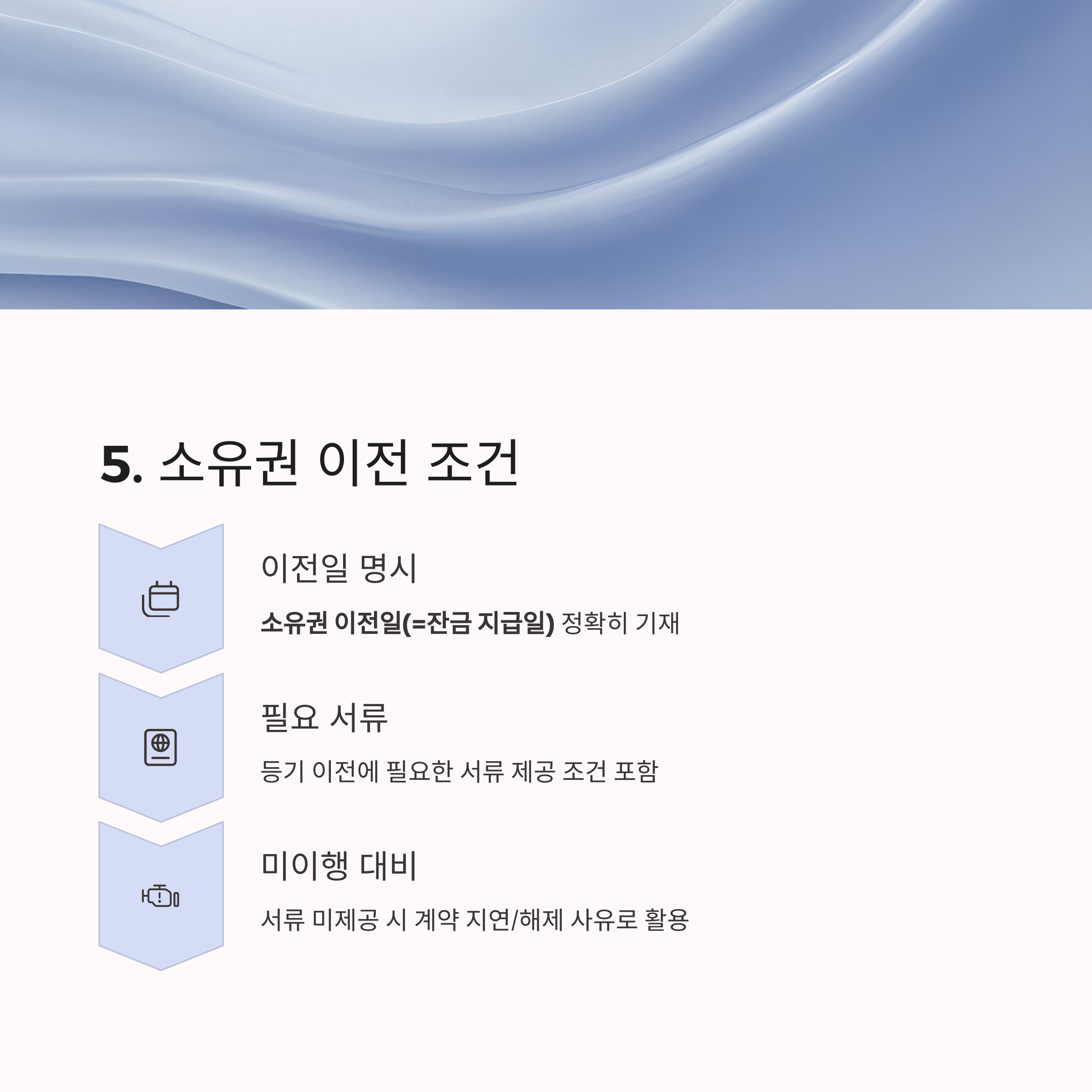 5. 소유권 이전 조건 및 날짜