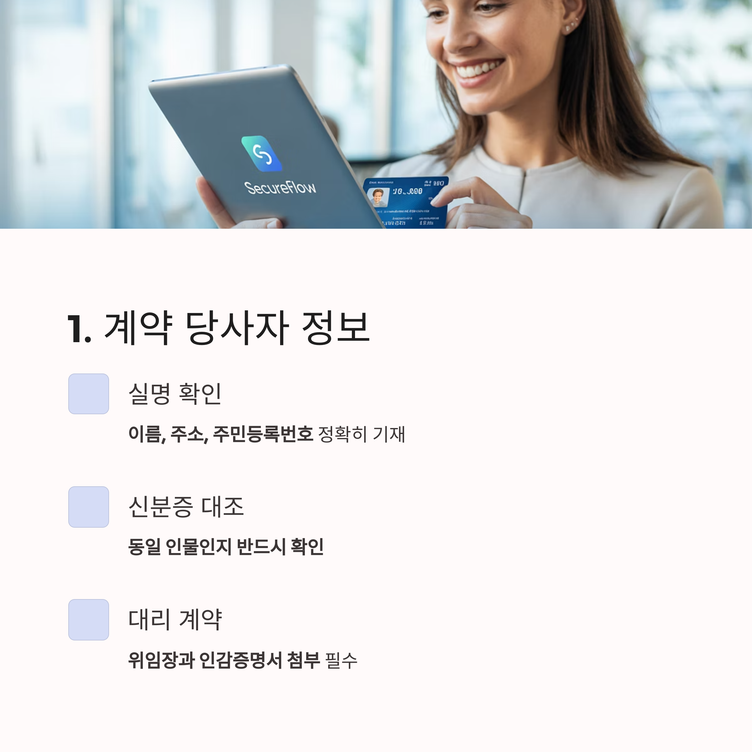 1. 계약 당사자 정보: 실명과 신분증 대조 필수