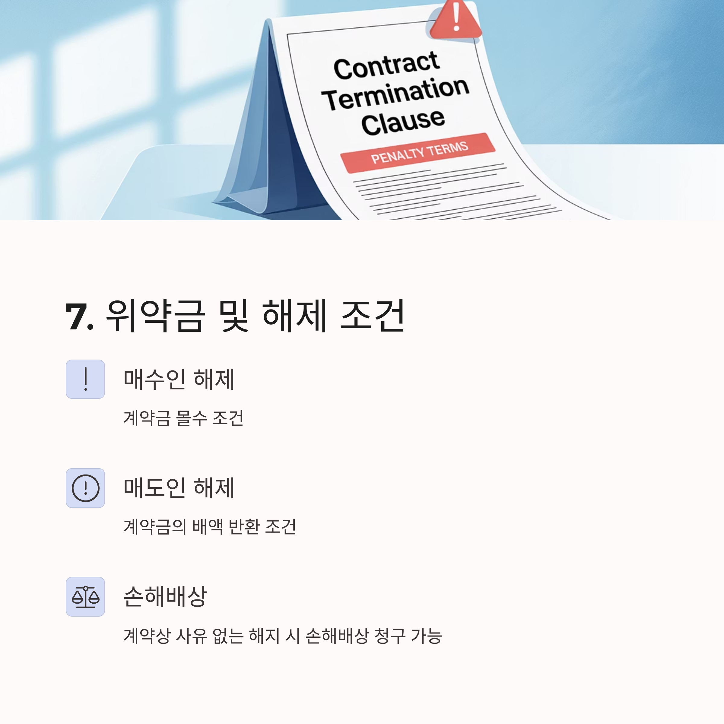 | 해제 및 위약 조항 | 계약 파기 시 기준 설정 | 매우 높음 |