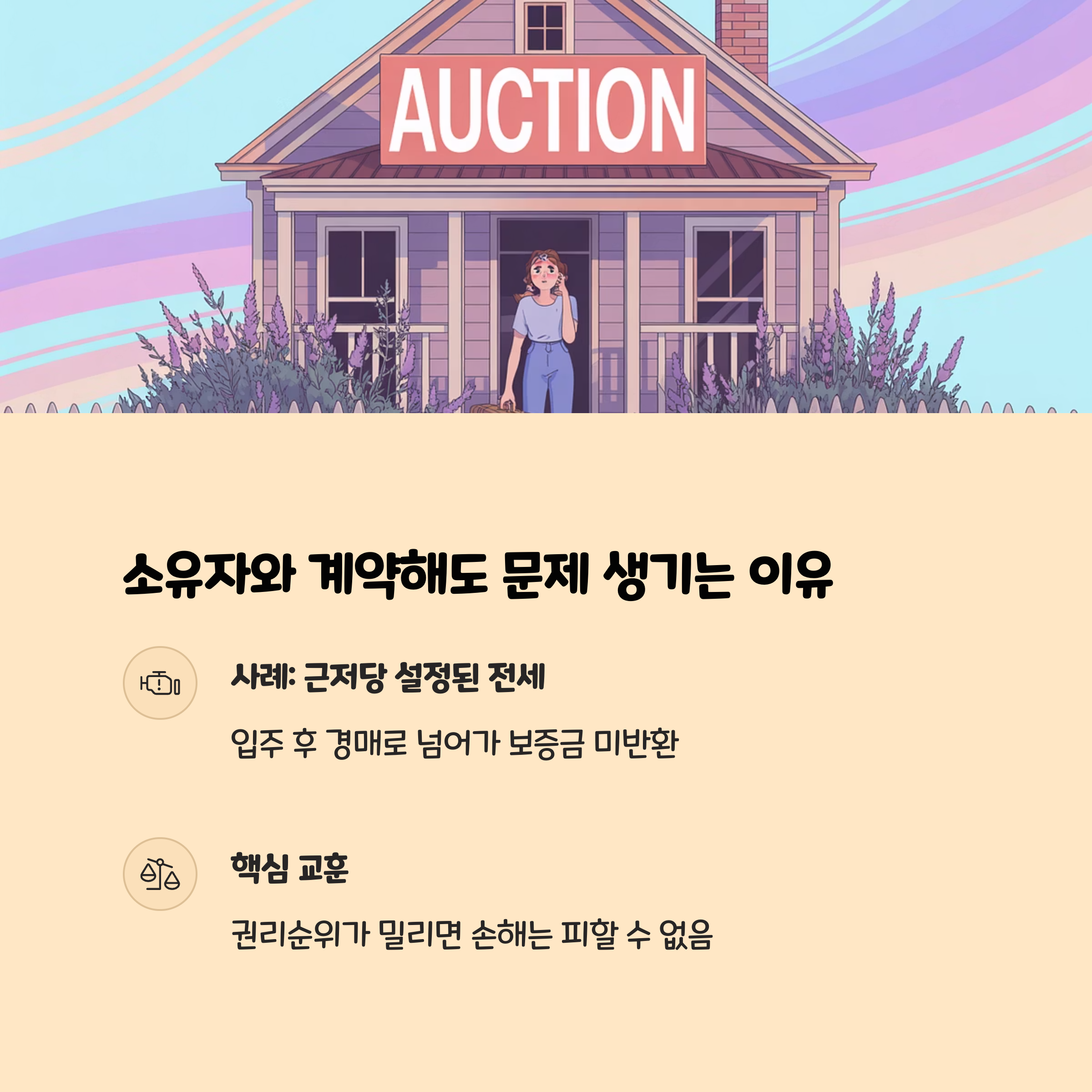 "소유자와 직접 계약했어도, 권리순위가 밀리면 손해는 피할 수 없습니다."