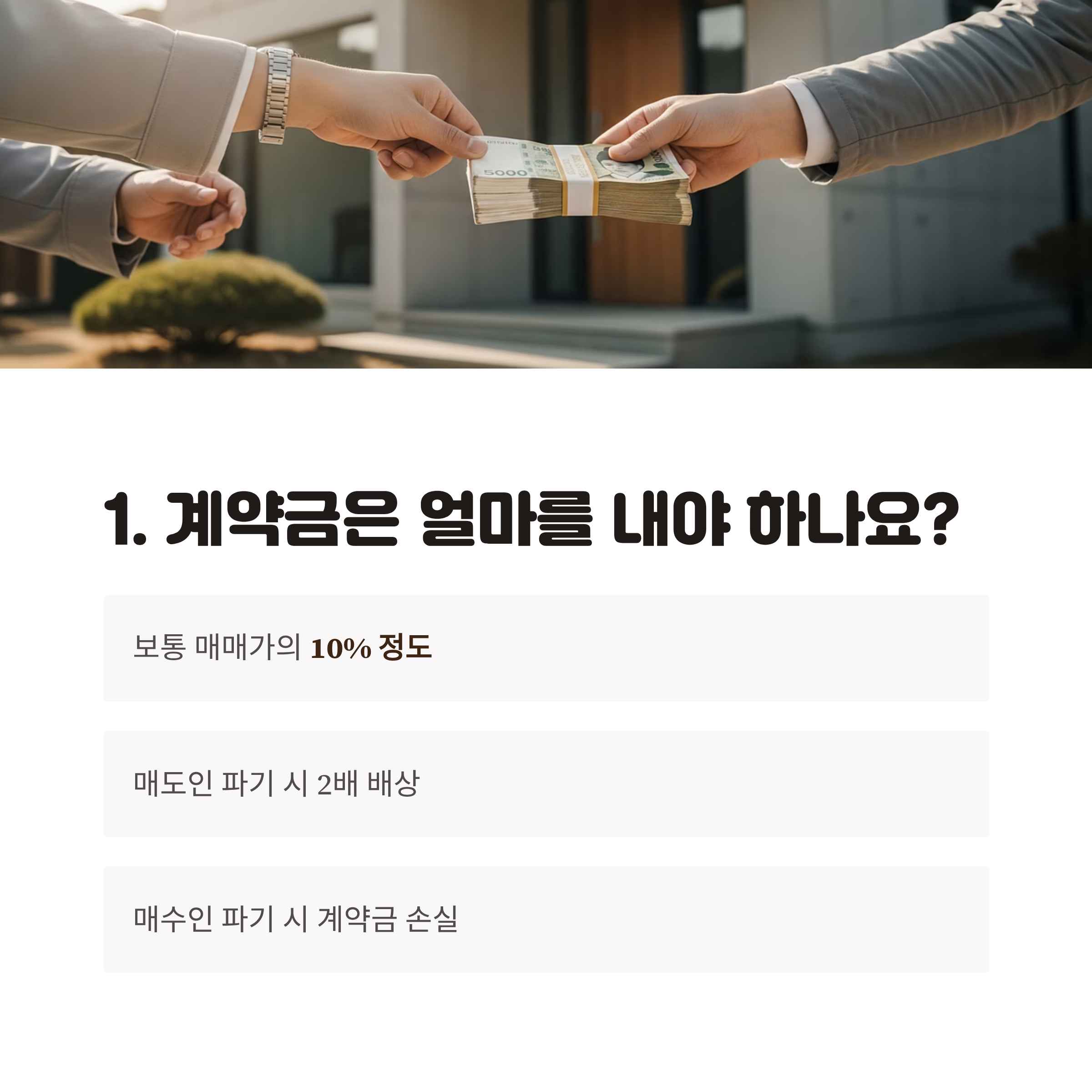 1. 계약금은 보통 얼마를 내야 하나요?