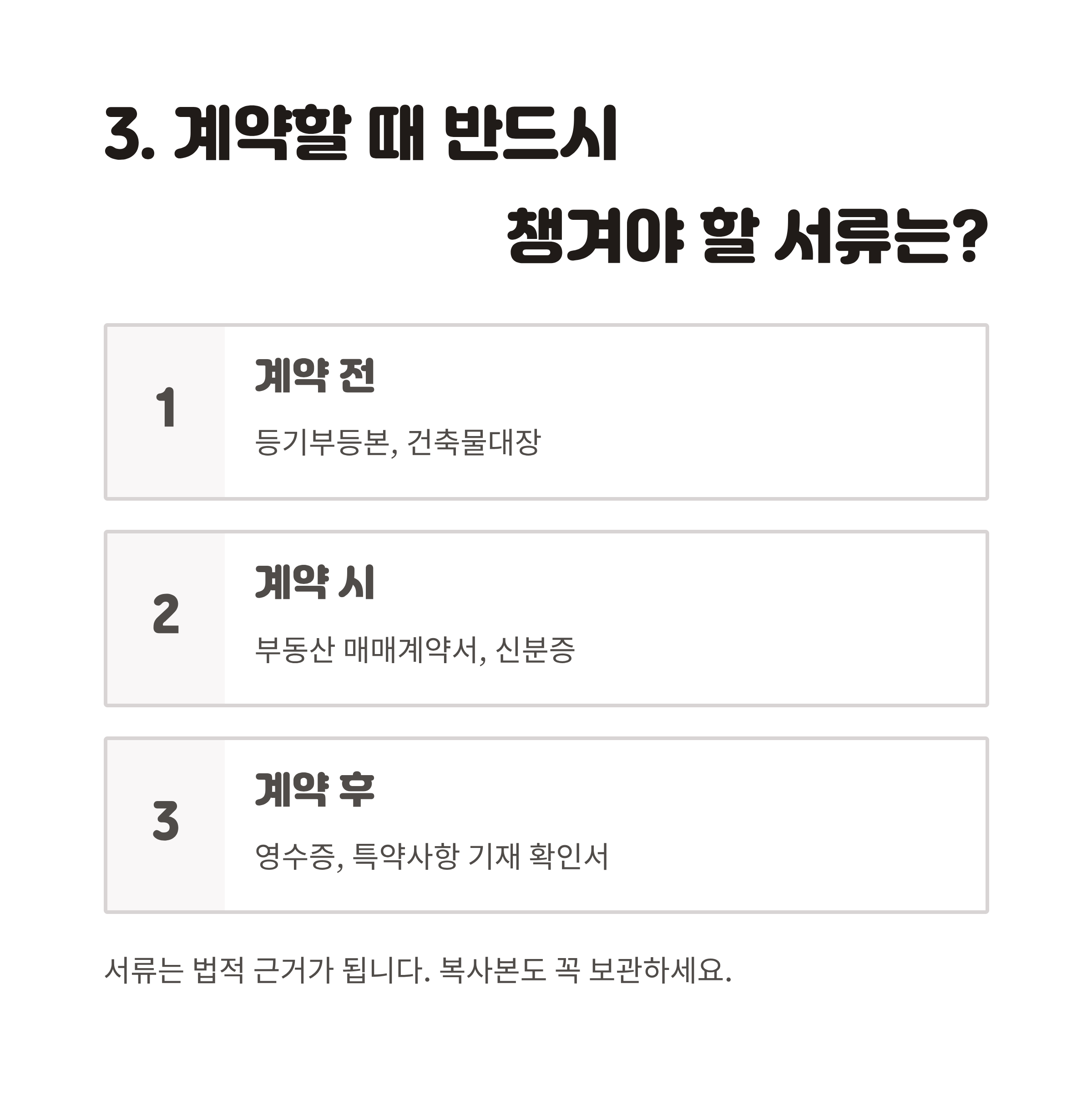 3. 계약할 때 반드시 챙겨야 할 서류는?