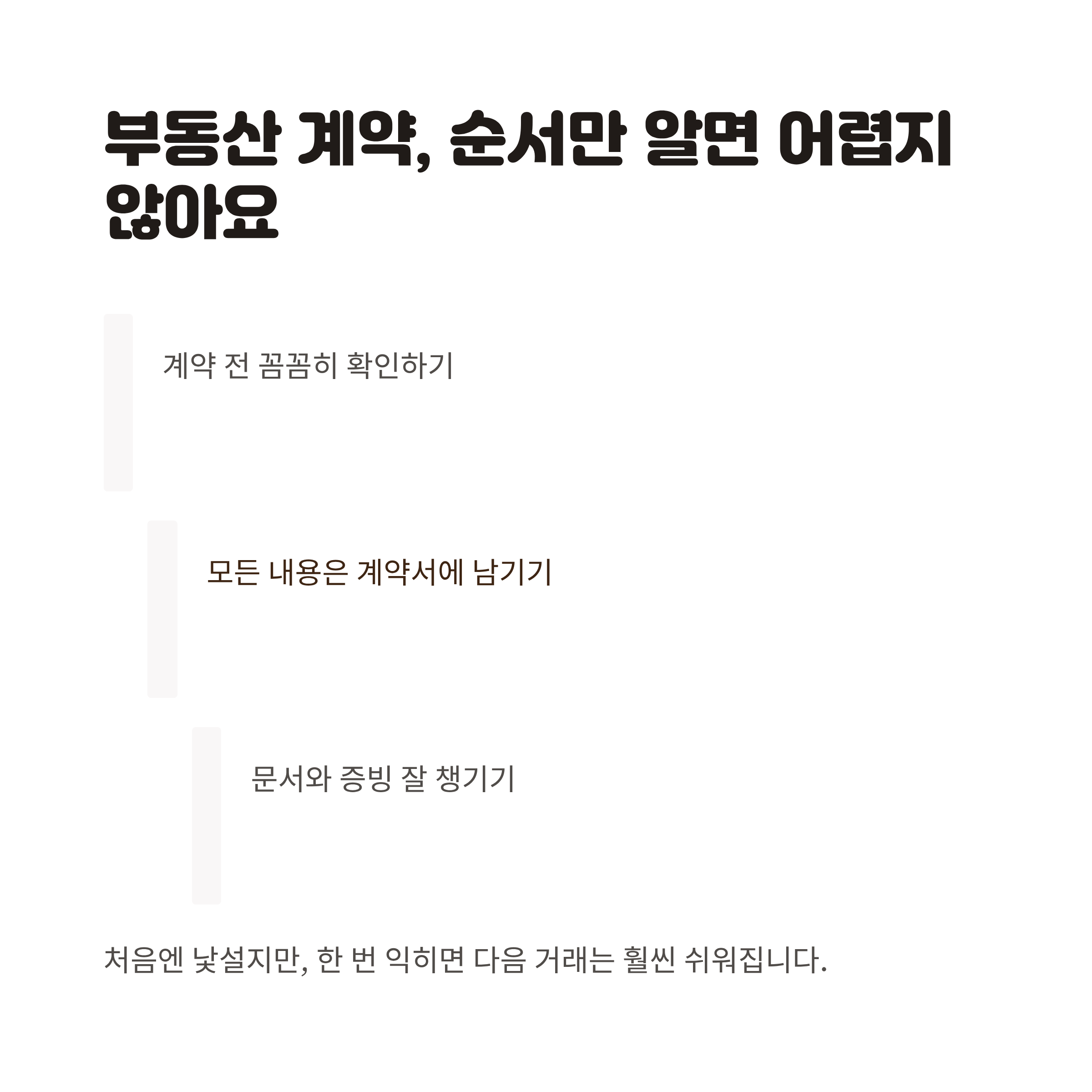 하나씩 체크하다 보면 자연스럽게 계약 흐름도 이해하게 될 거예요.