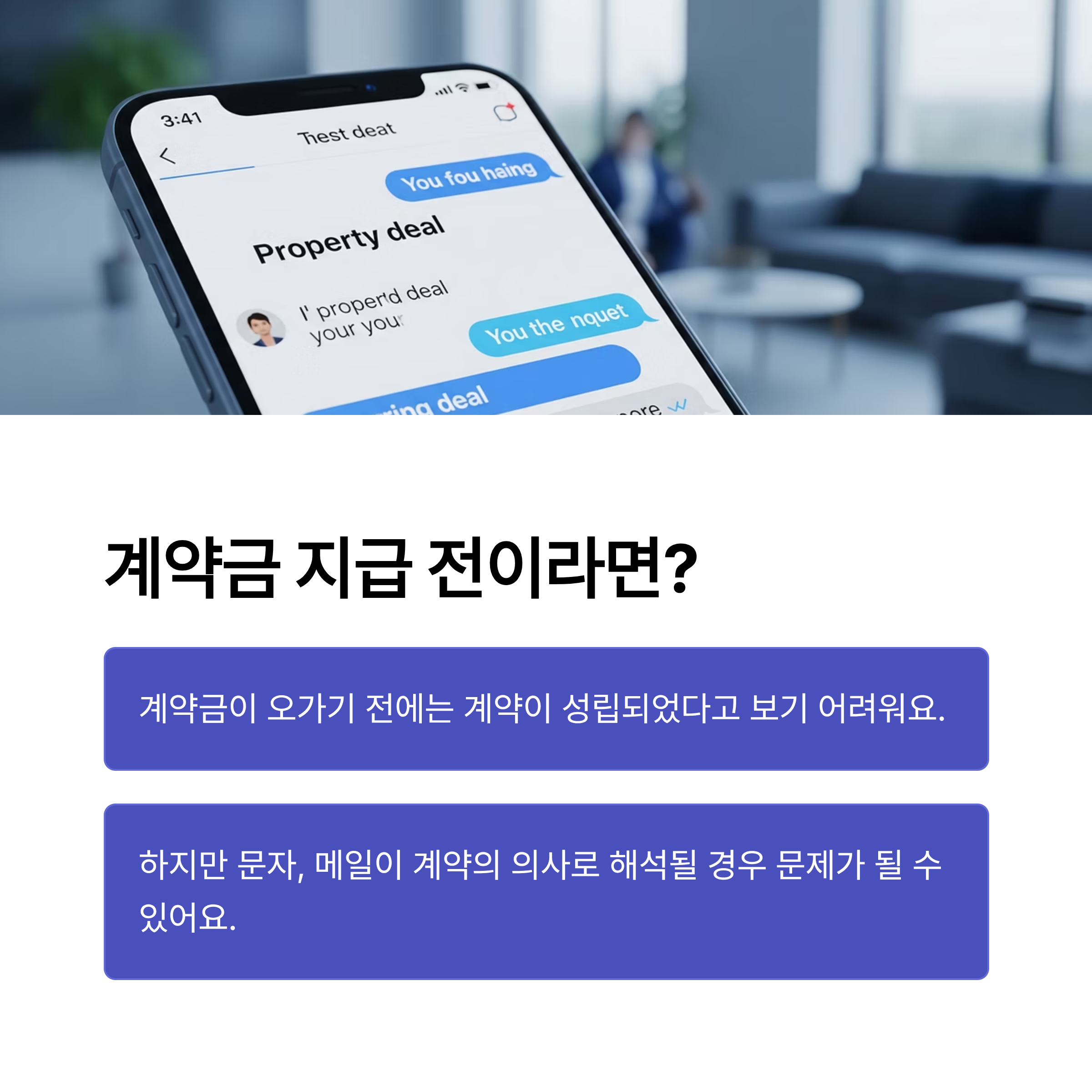 하지만 문자, 메일, 메신저 내용이 계약의 의사로 해석될 경우