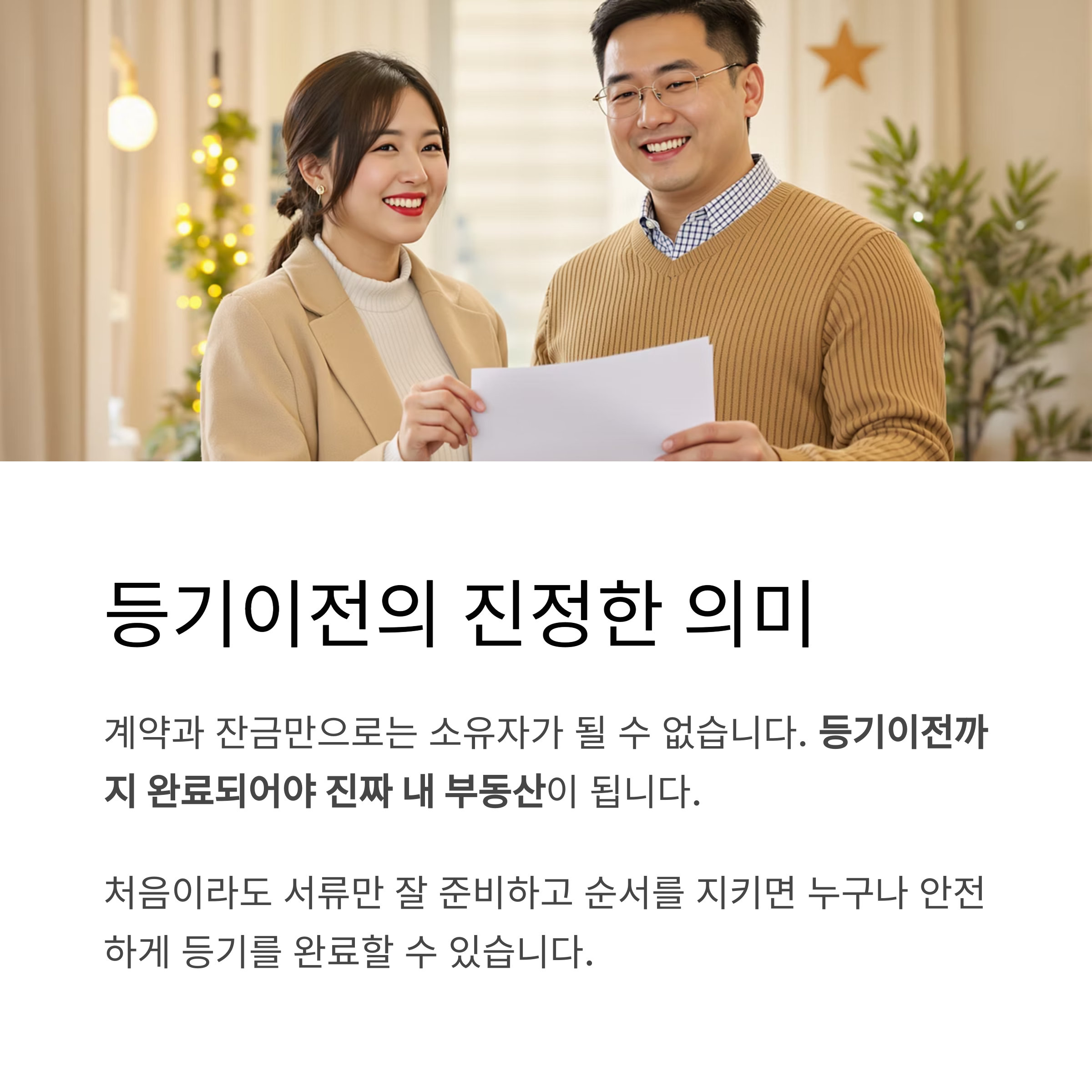 "등기를 완료해야 내 이름으로 집이 ‘법적으로 등록’됩니다."