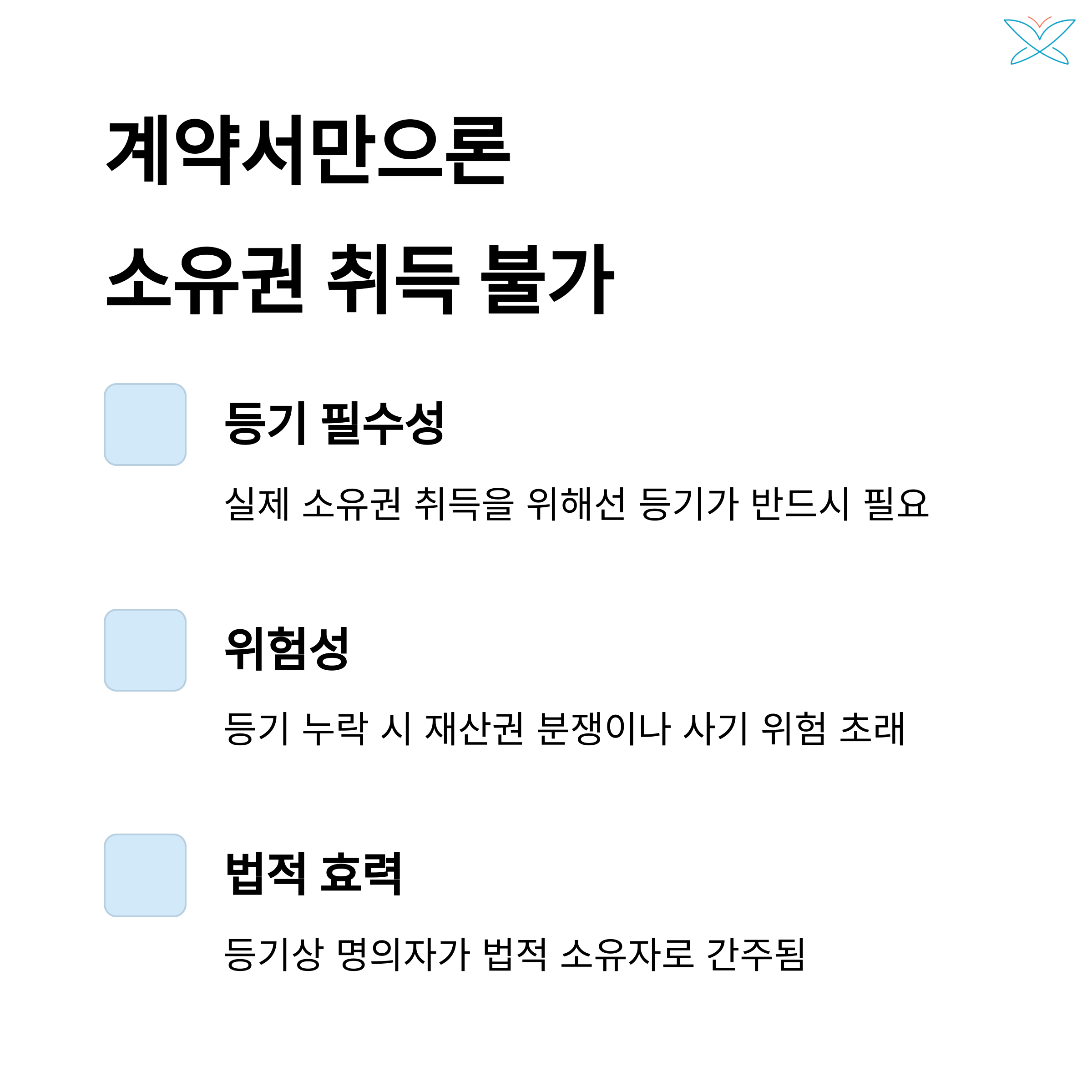 실제로 소유권을 취득하기 위해선 등기가 반드시 필요합니다.
