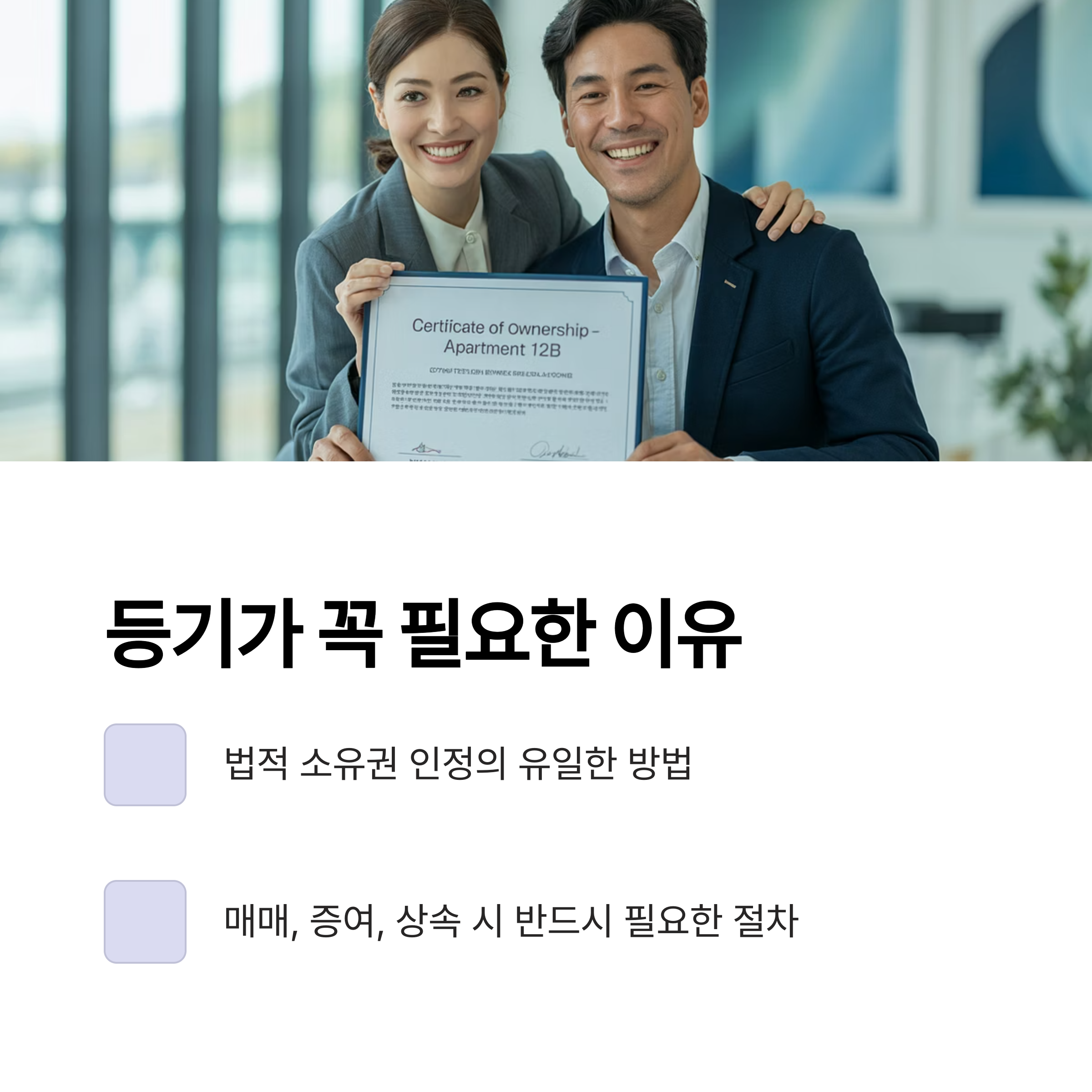 | 등기 안 하면? | 법적 소유권 불인정, 분쟁 위험 |