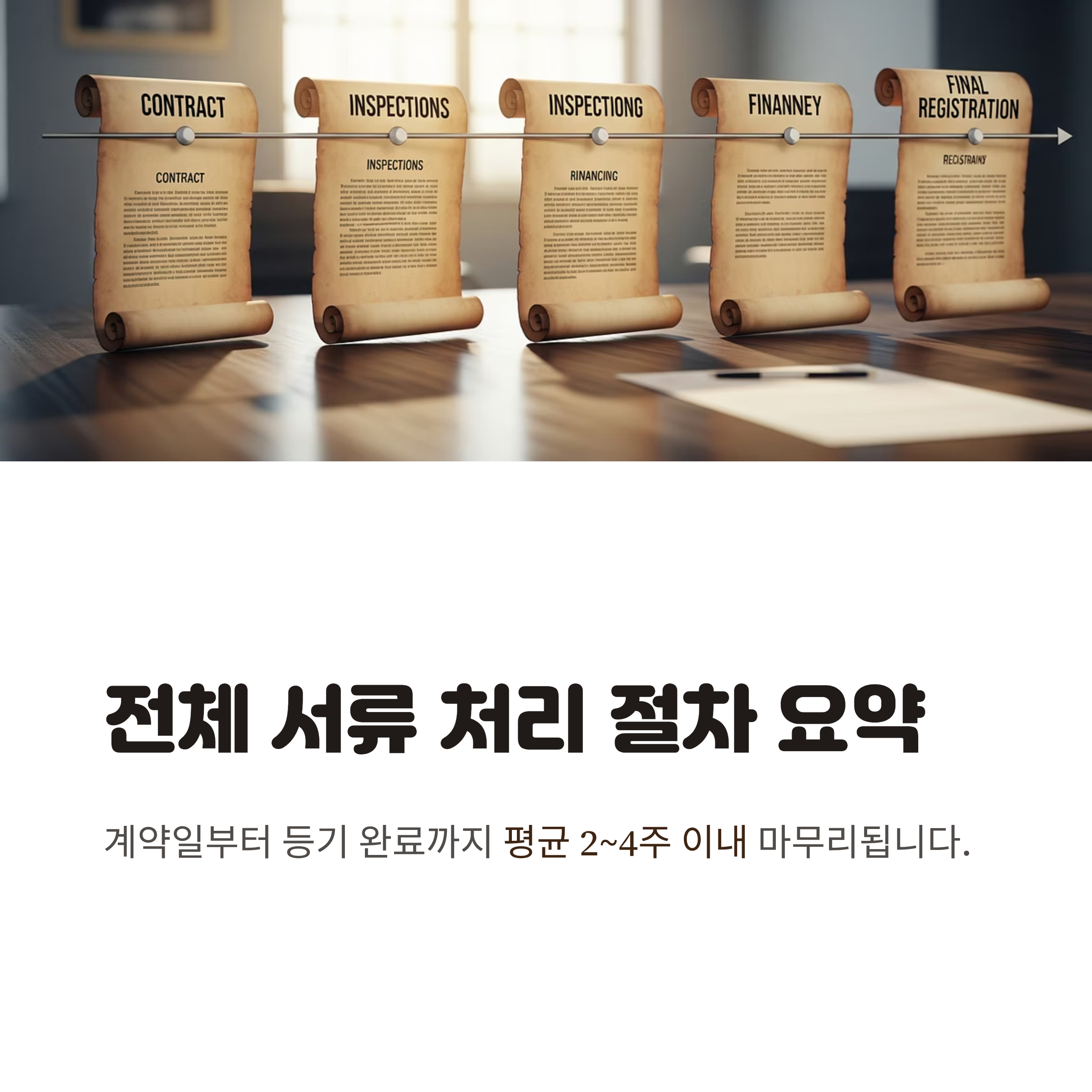 계약일부터 등기 완료까지 평균 2~4주 이내 마무리됩니다.