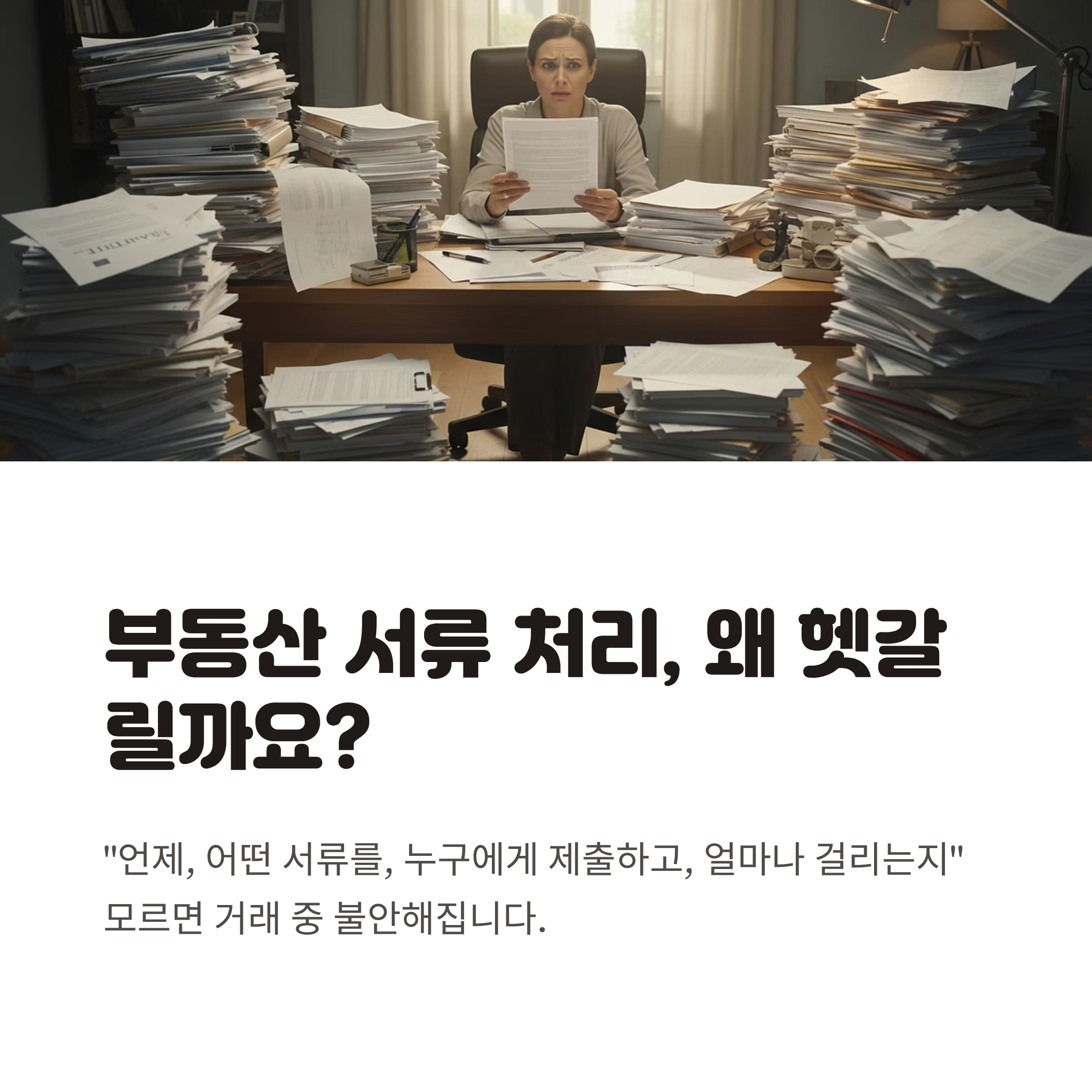 "언제, 어떤 서류를, 누구에게 제출하고, 얼마나 걸리는지" 모르면 거래 진행 중 계속 불안해지죠.