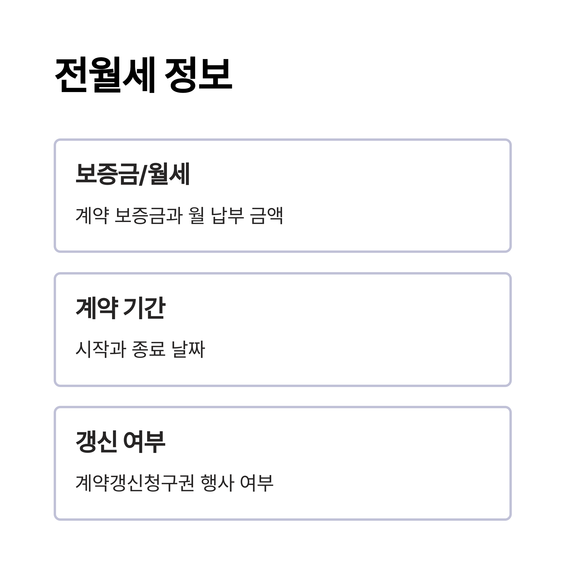 | 갱신 여부 | 계약갱신청구권 행사 여부 표기 (일부 지역) |