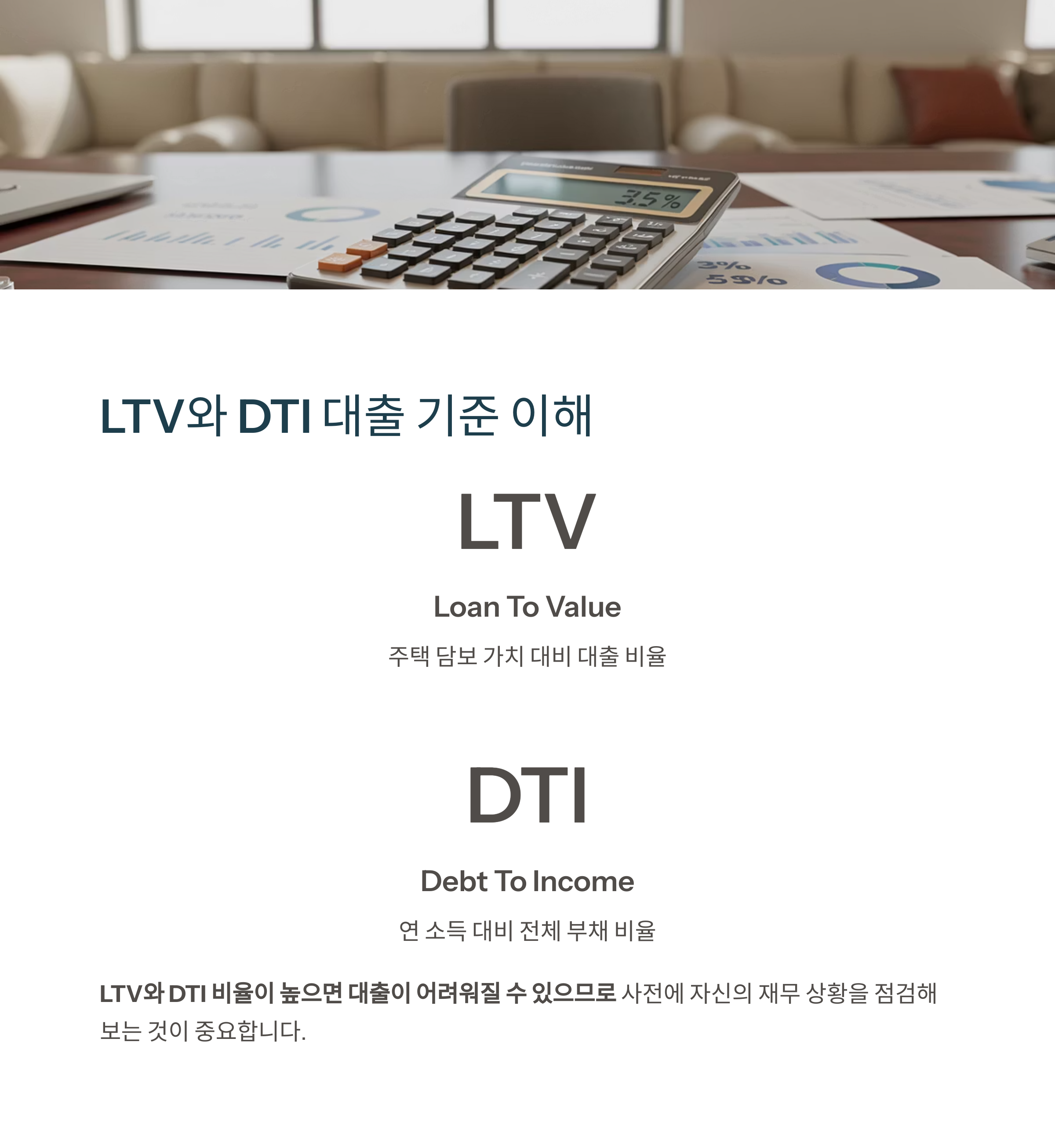 LTV와 DTI 비율이 높으면 대출이 어려워질 수 있으므로
