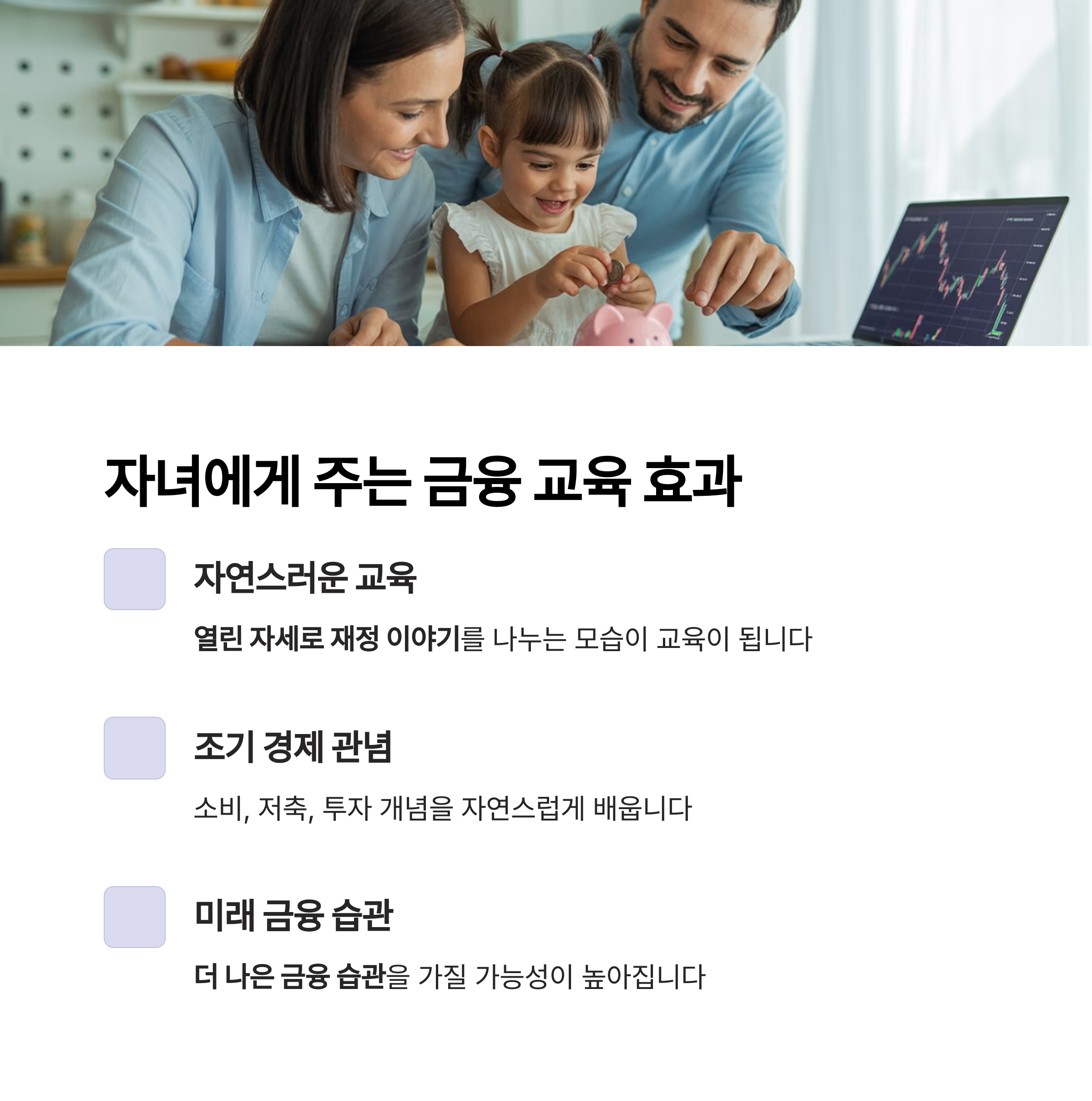 부부가 열린 자세로 재정 이야기를 나누고 계획을 세우는 모습은 자녀에게 교육 효과를 가져옵니다.