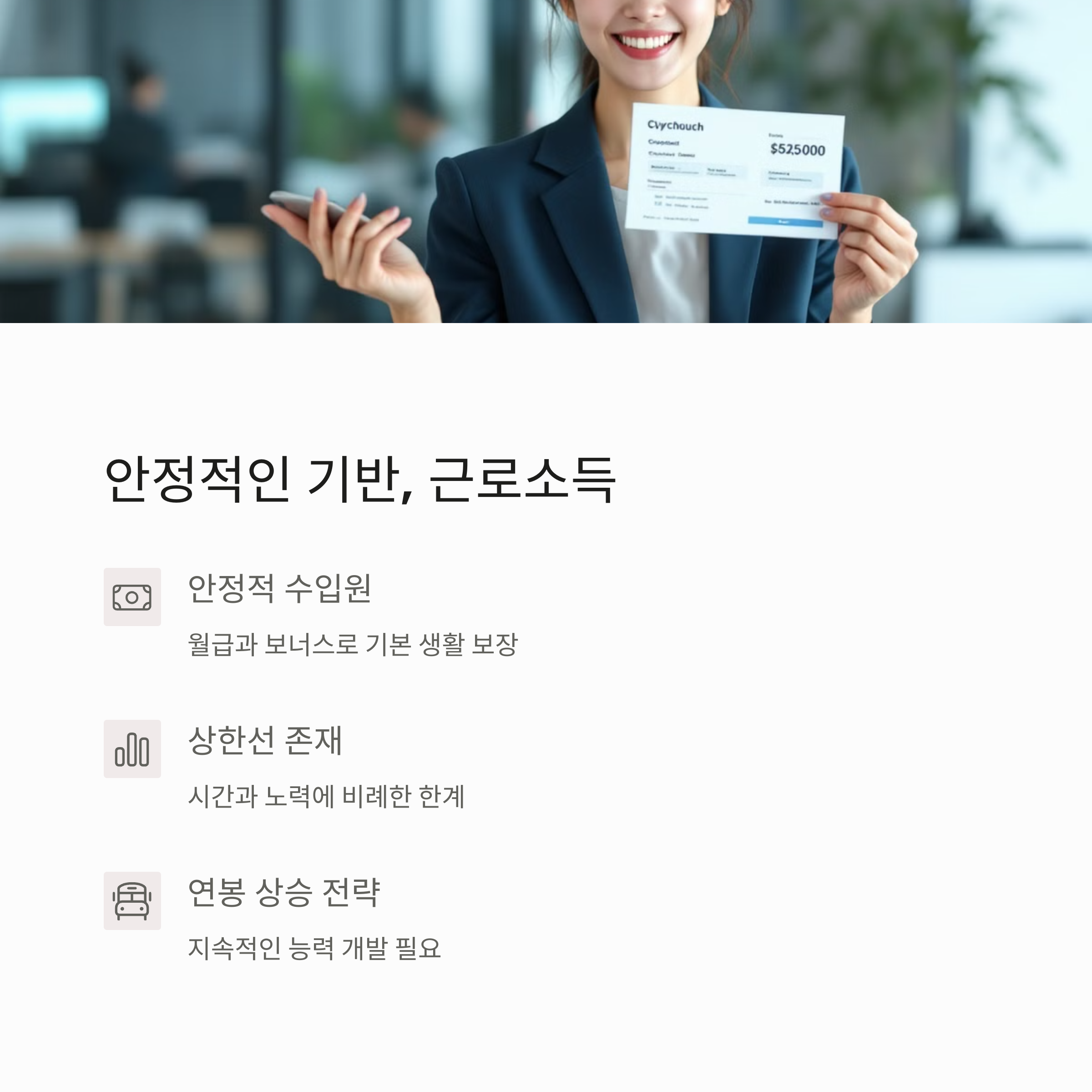 | 투자소득 | 주식, 부동산, 배당 등 | 시간이 지날수록 커지는 구조 |