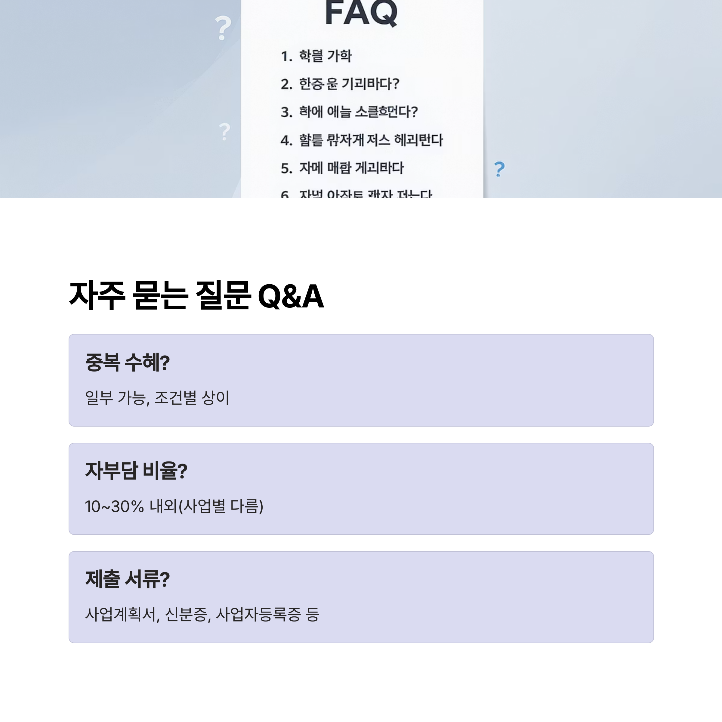 사업 초기 지원금 Q&A, 자주 묻는 질문