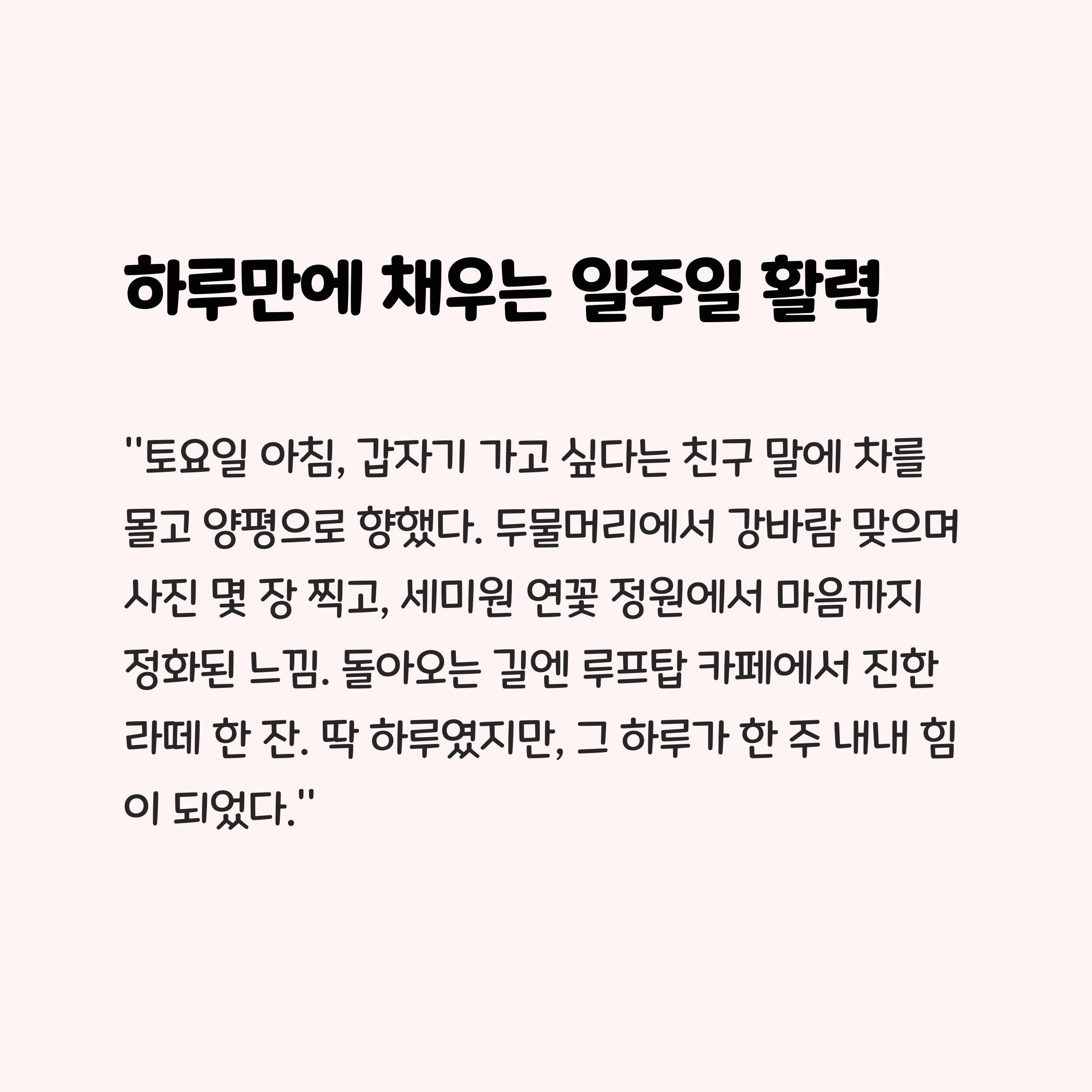 딱 하루였지만, 그 하루가 한 주 내내 힘이 되었다."