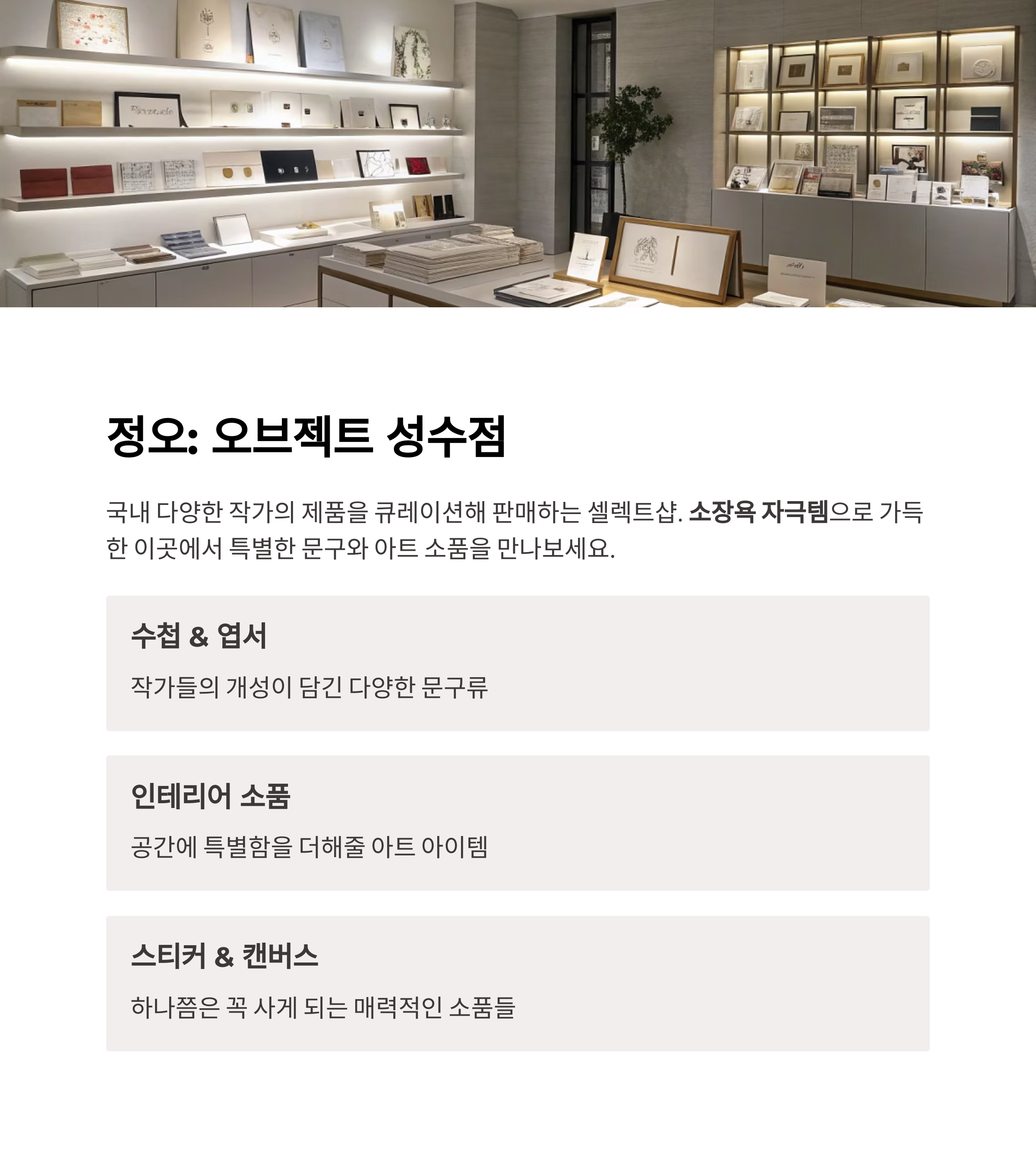 정오: '오브젝트 성수점'에서 문구와 아트 소품 탐색