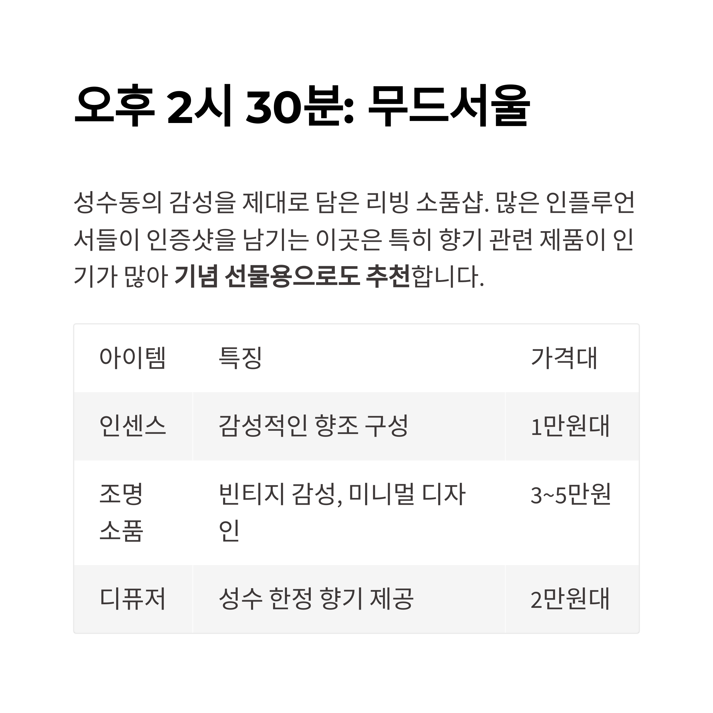 성수동 감성 소품샵 투어, 하루 코스 추천