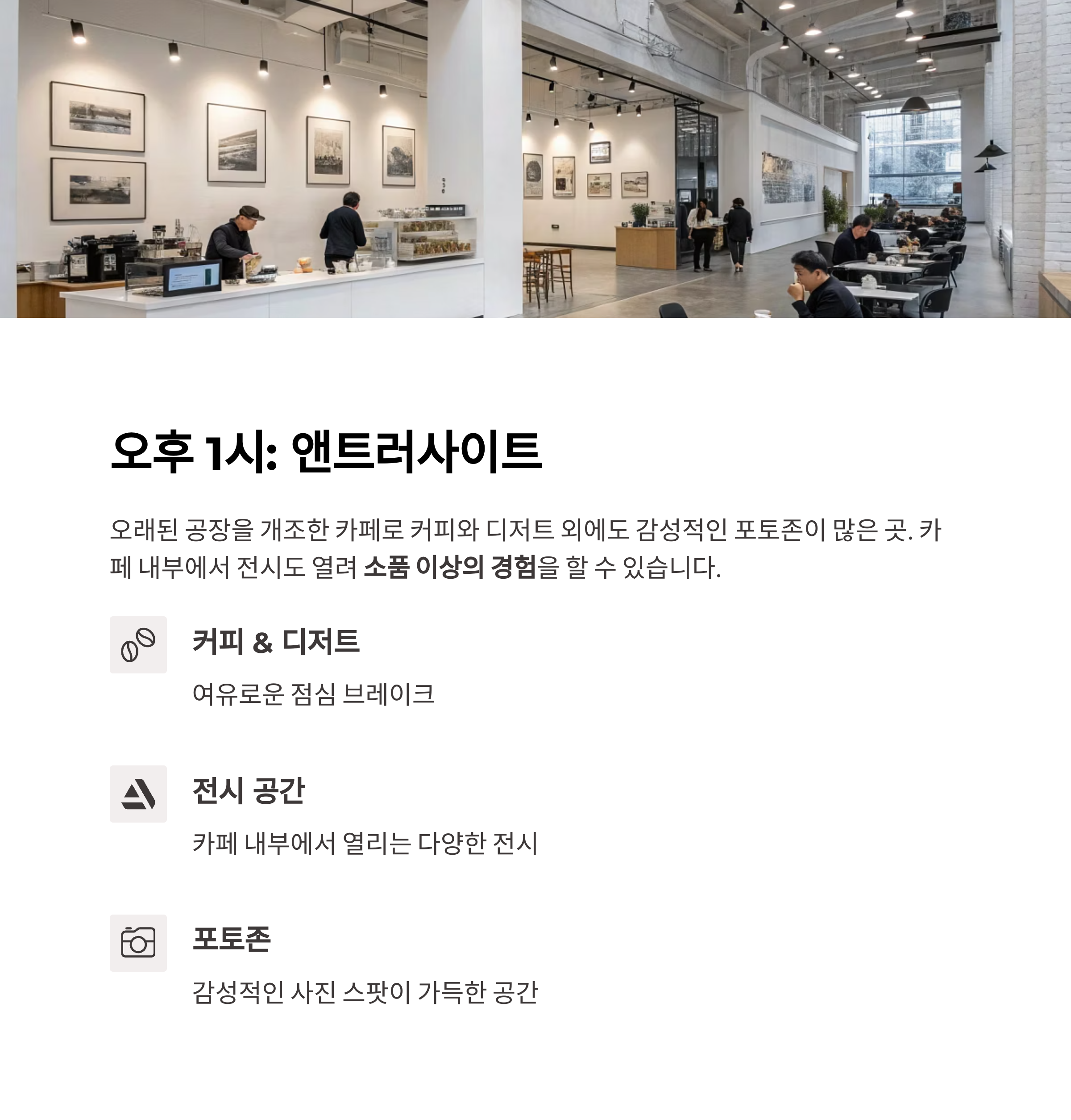 오후 1시: ‘앤트러사이트’에서 감성 점심 브레이크