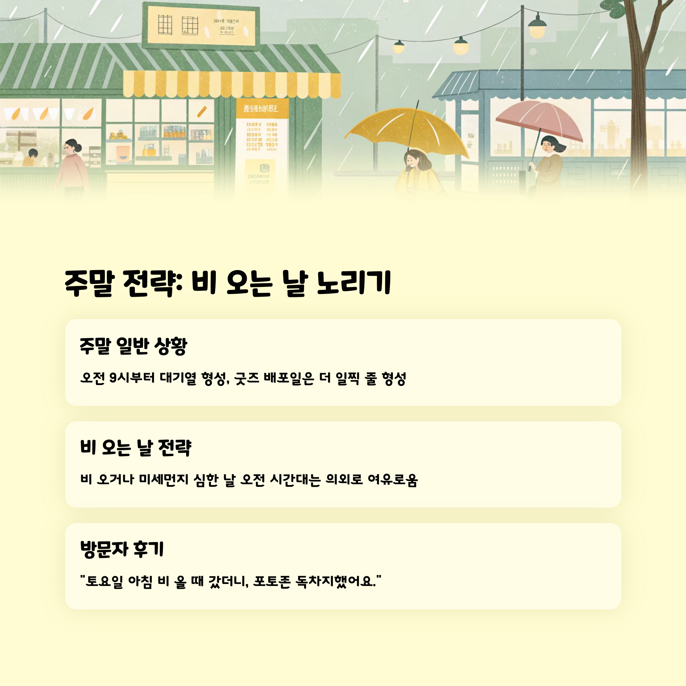 하지만, **현지인과 팝업 마니아들이 공통적으로 추천하는 ‘줄 안 서는 시간대’**를 알면