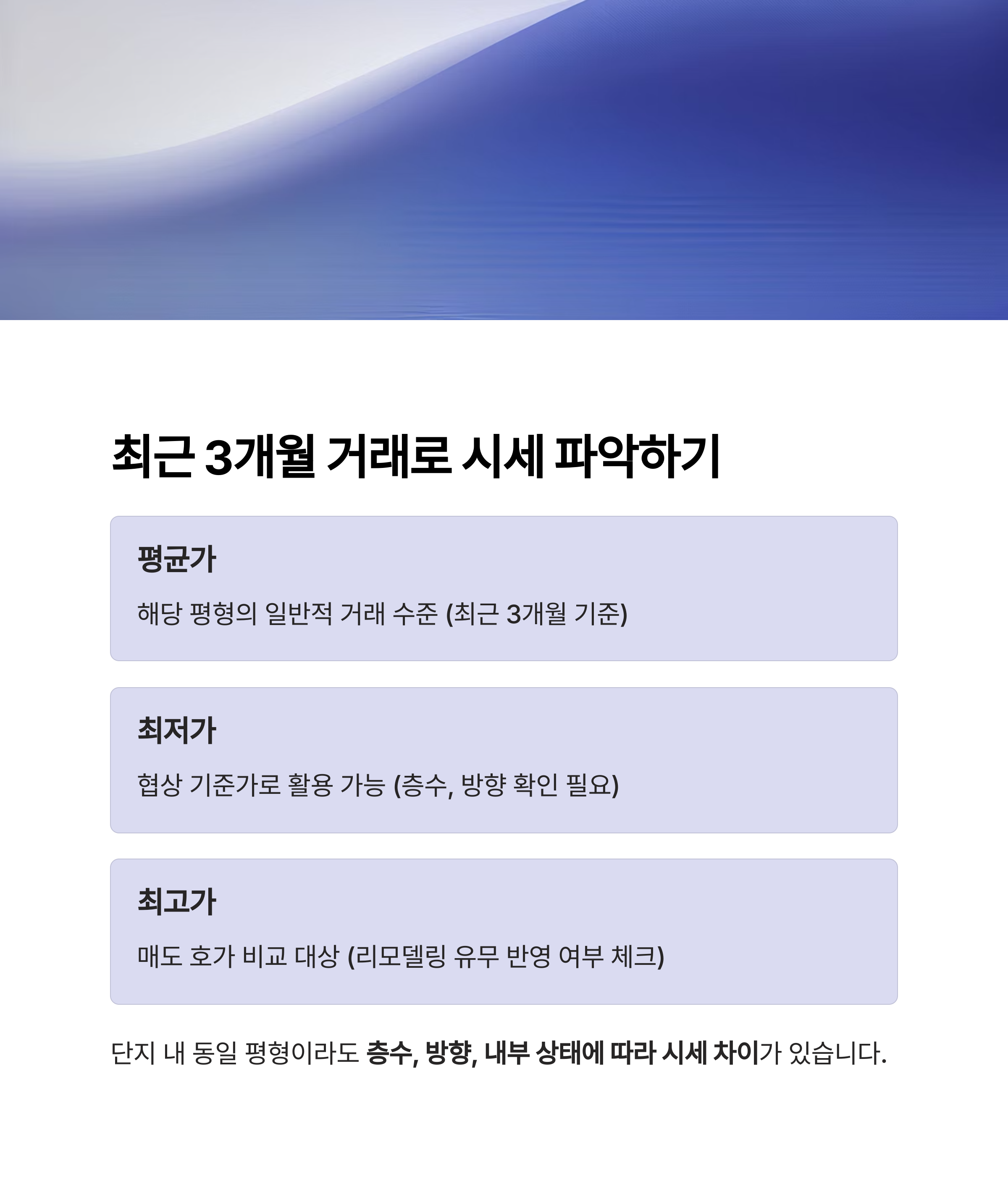 | 평균가 | 해당 평형의 일반적 거래 수준 | 최근 3개월 |