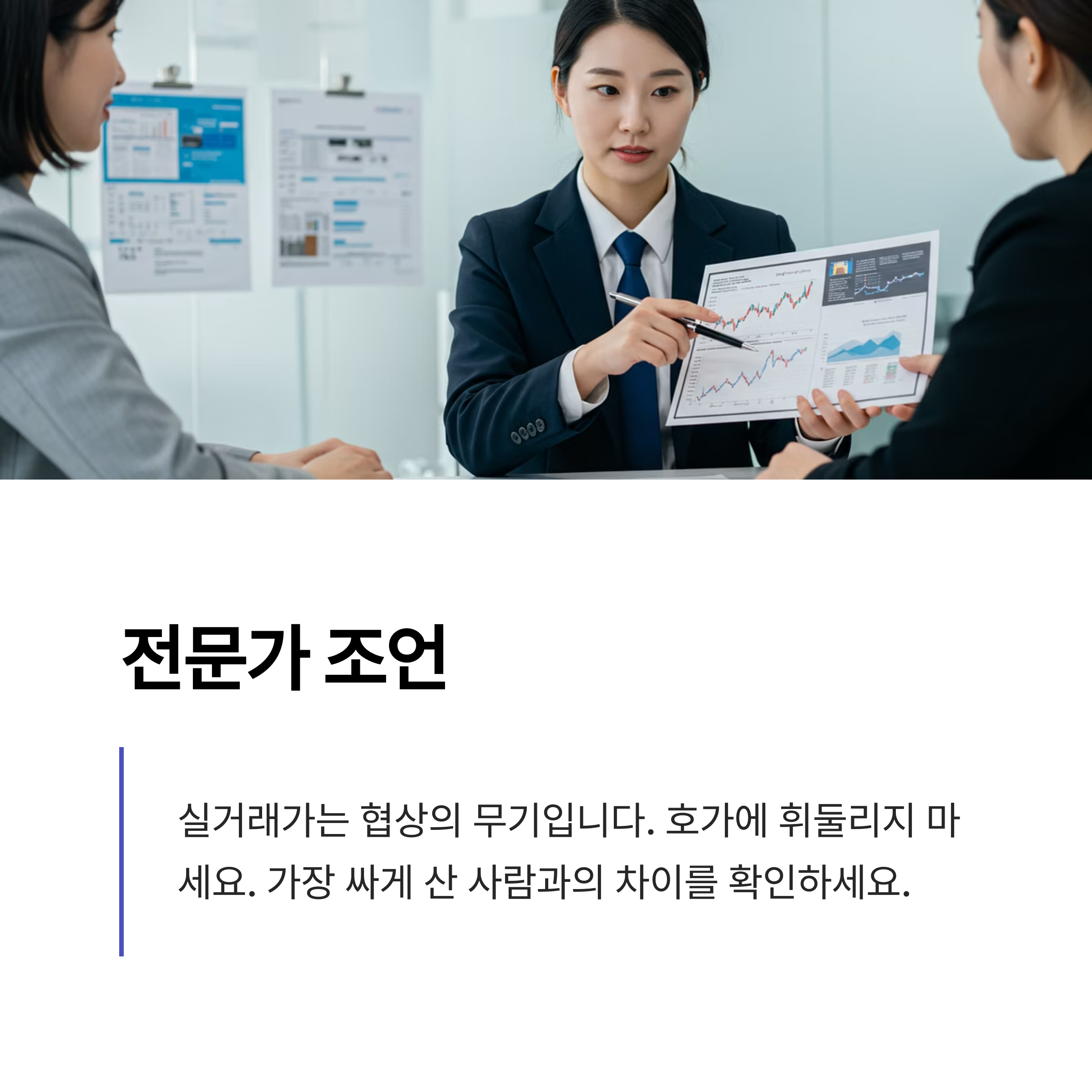 | 최저가 | 협상 기준가로 활용 가능 | 층수, 방향 확인 필요 |