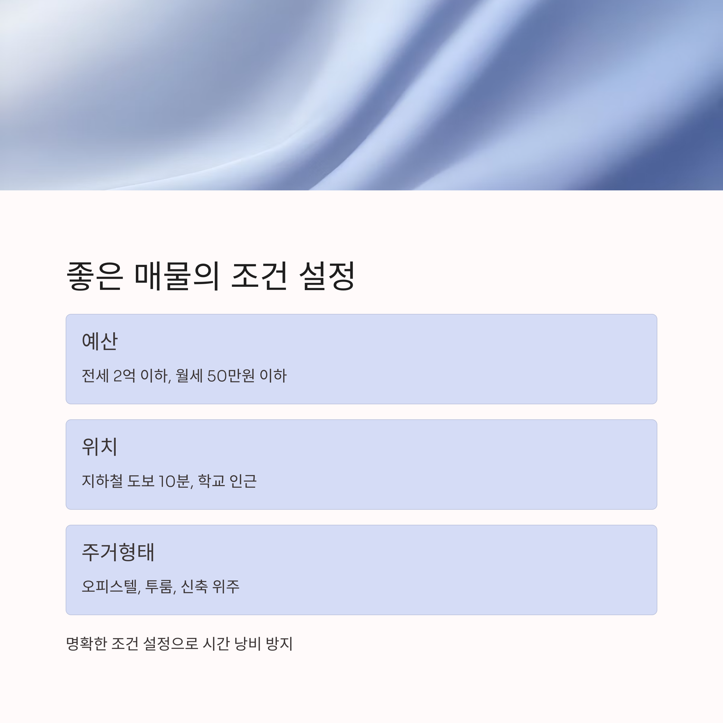 중요 포인트: 조건을 명확히 하면 불필요한 매물에 시간 낭비하지 않게 됨