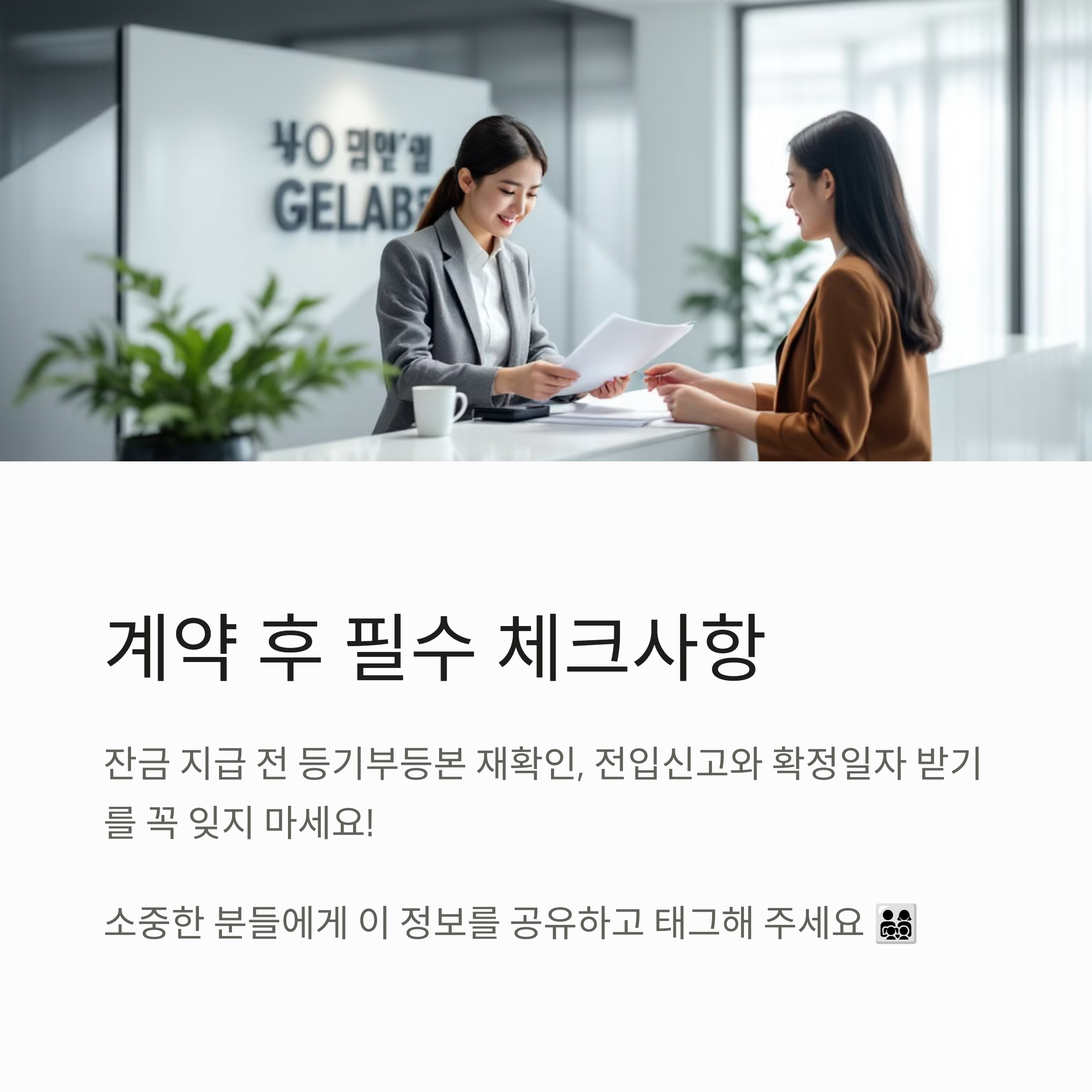 부동산 계약은 신중한 검토가 필요한 중요한 절차입니다. 등기부등본을 확인하고, 계약서의 내용을 꼼꼼히 살펴보며, 중개업소 선택에도 주의를 기울여야 합니다. 또한 계약 후에도 변동 사항이 없는지 지속적으로 확인하는 것이 안전한 부동산 거래의 핵심입니다.