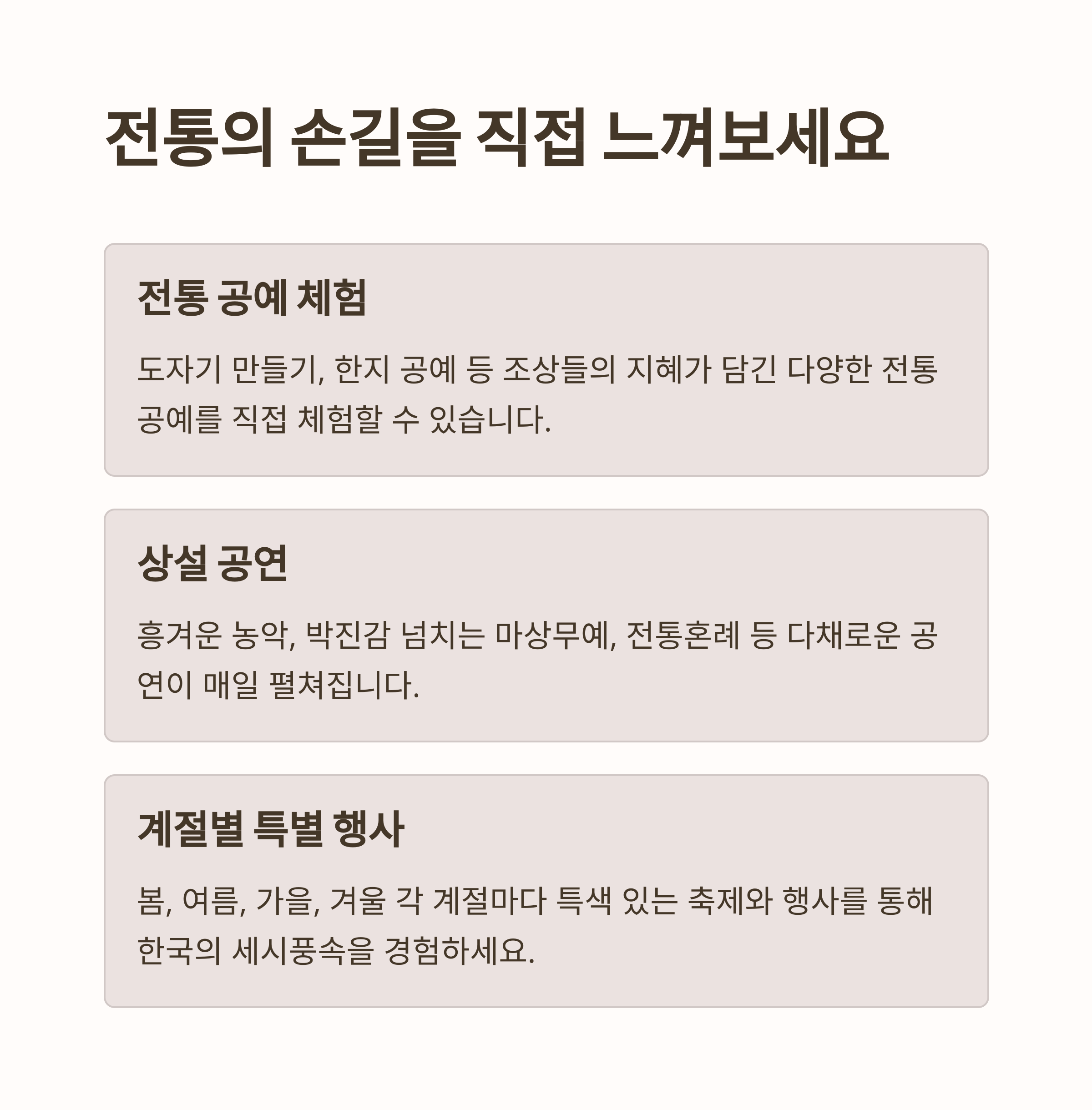 | 최대 59% 할인과 프로모션 진행 | 달빛을 더하다, 전통 분위기 만끽 | 공예 체험과 전통 공연 프로그램 |