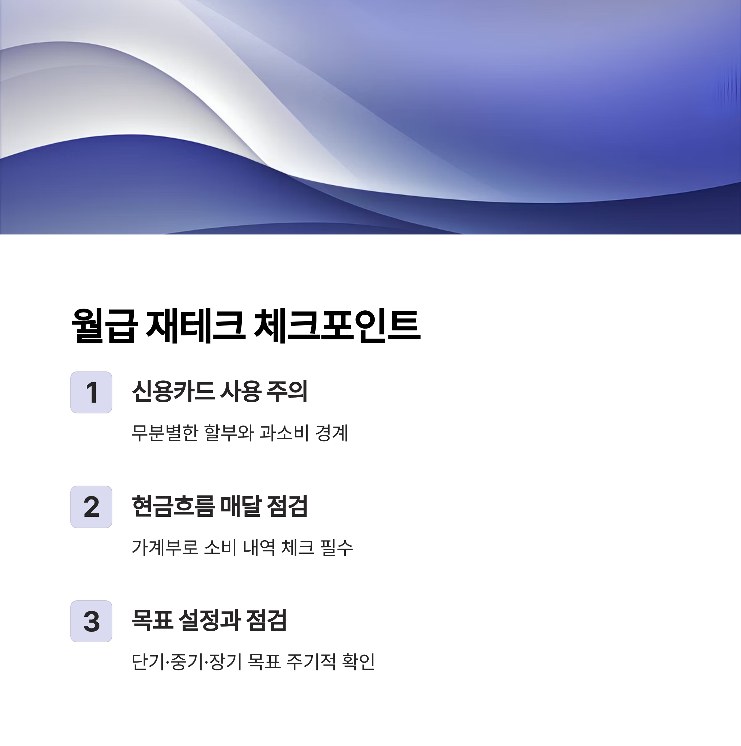 | 현금흐름 매달 점검 | 가계부·가계앱으로 소비 내역 체크 필수 |
