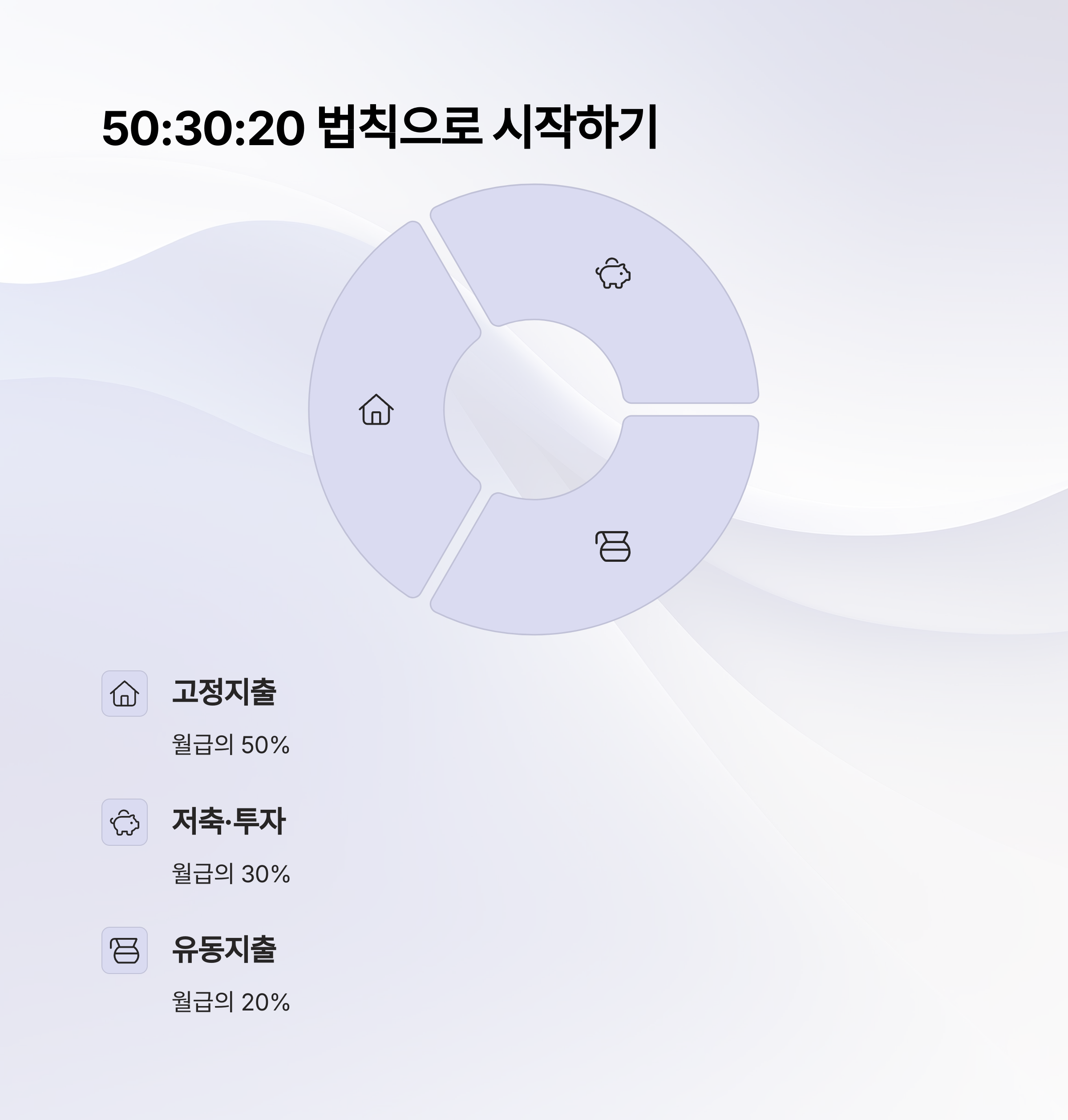 월급의 50%는 고정지출, 30%는 저축·투자, 20%는 유동지출로 나누는 방법입니다.