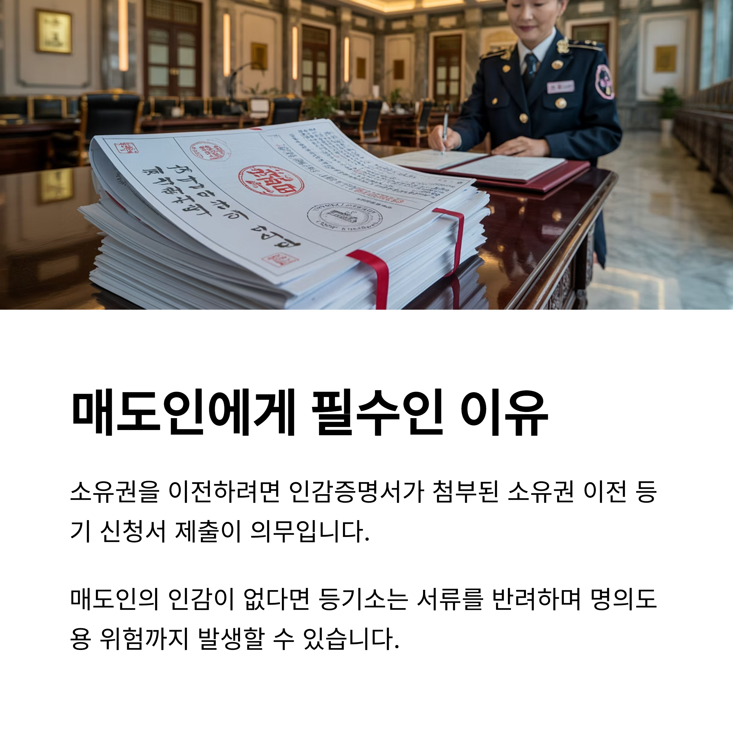매도인의 인감이 없다면 등기소는 서류를 반려하며