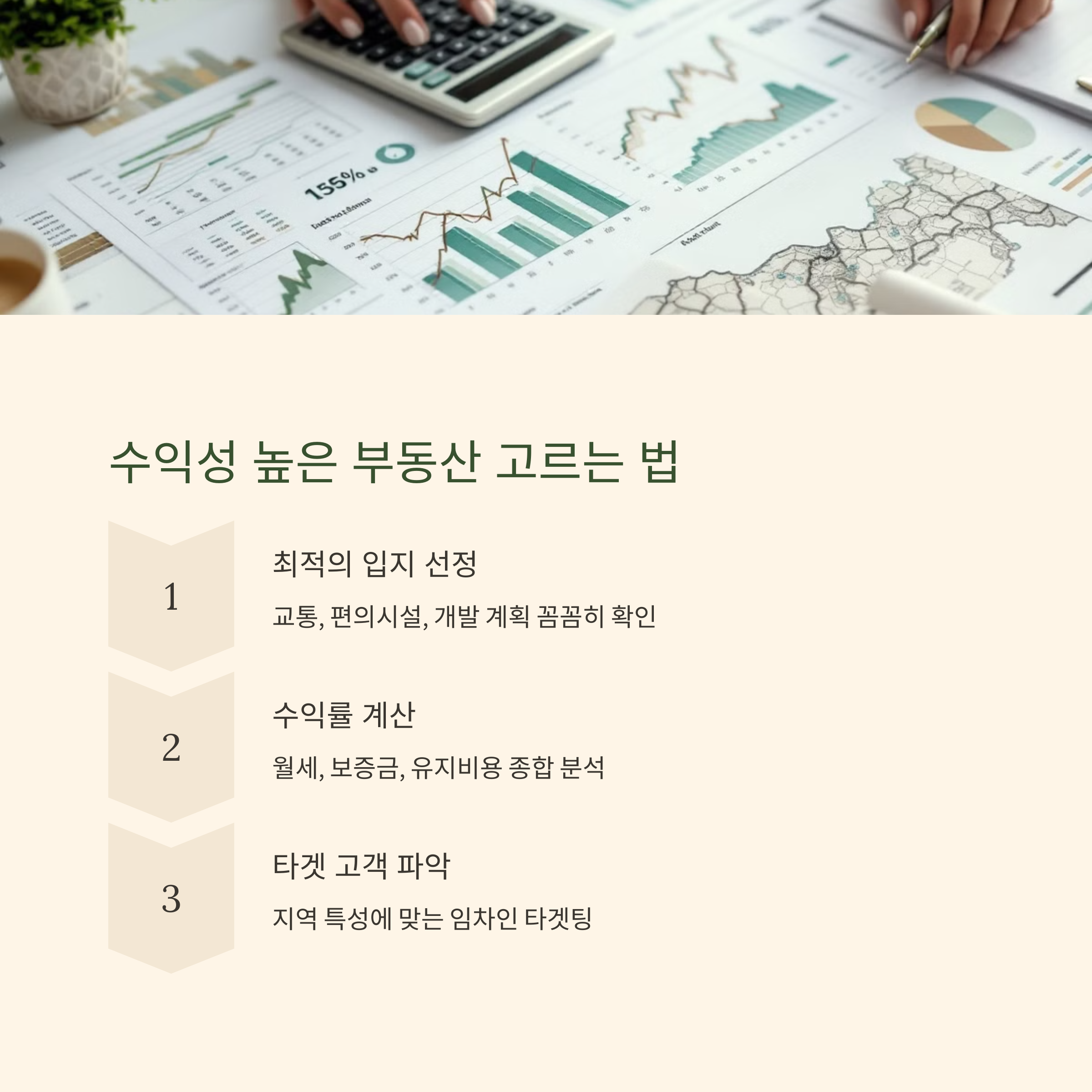 수익형 부동산을 선택할 때는 입지, 수익률, 임대 수요 등을 꼼꼼하게 분석해야 합니다. 단순히 저렴한 가격에 매입하는 것이 아니라 장기적으로 안정적인 임대 수익을 창출할 수 있는 곳을 선택하는 것이 중요합니다.