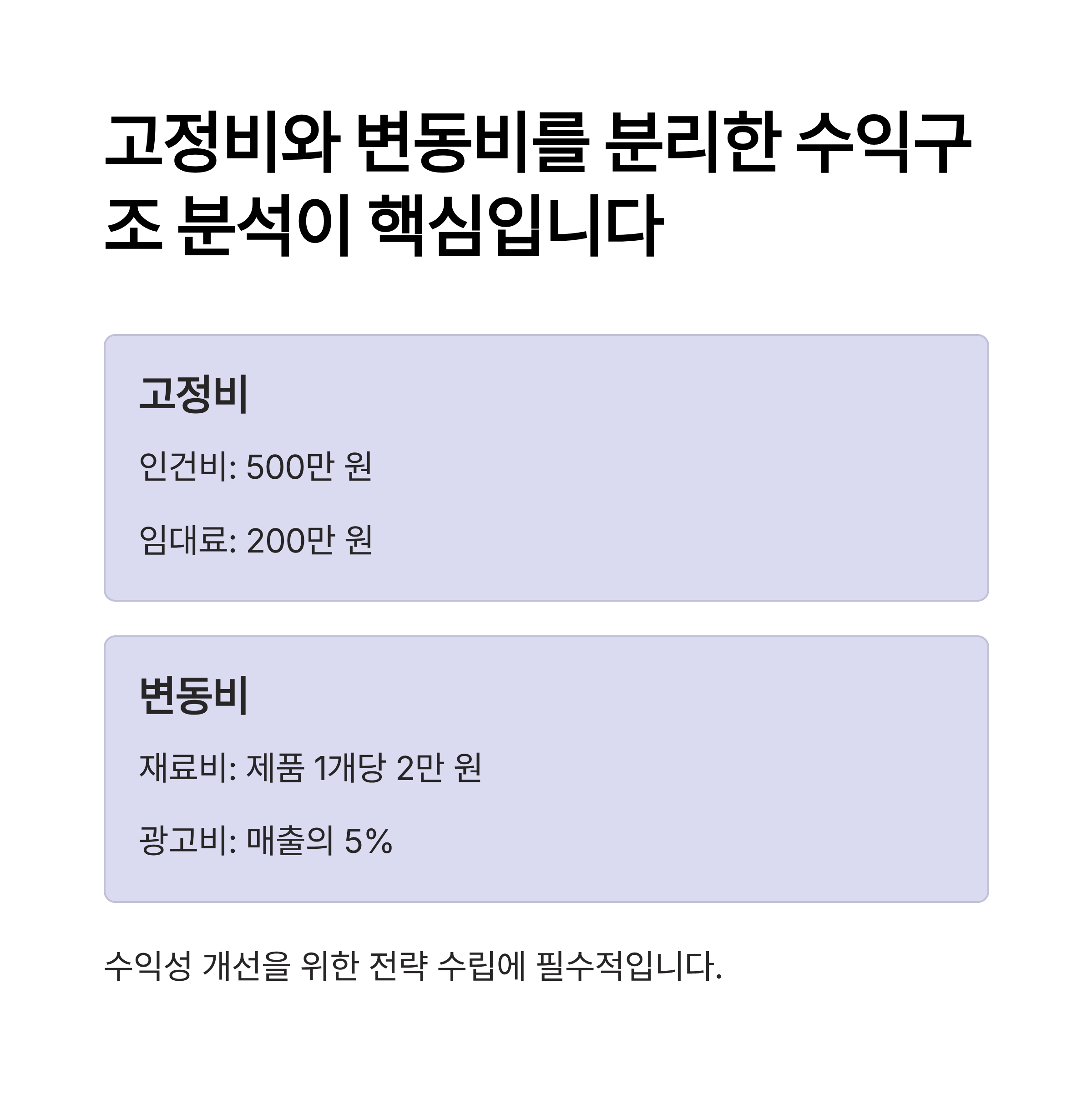 고정비와 변동비를 분리한 수익구조 분석이 핵심입니다