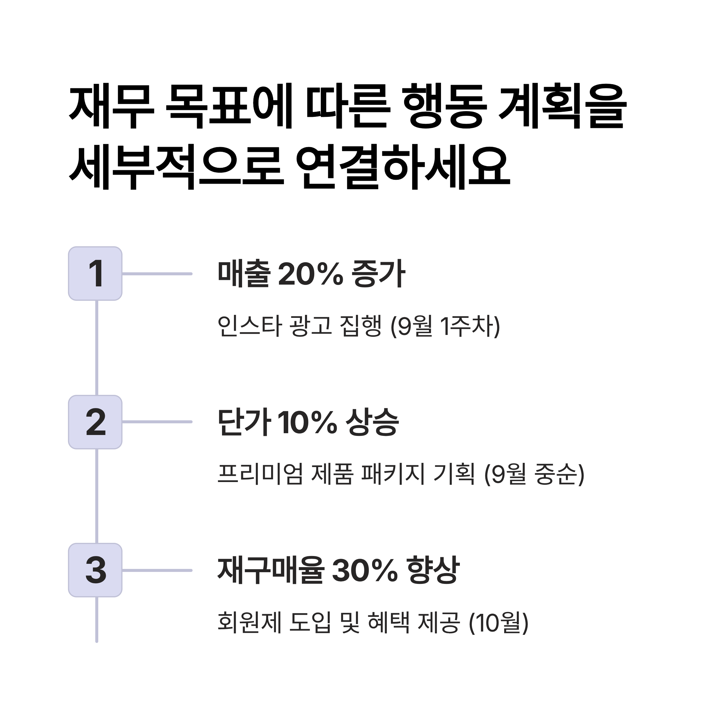 재무 목표에 따른 행동 계획을 세부적으로 연결해야 합니다