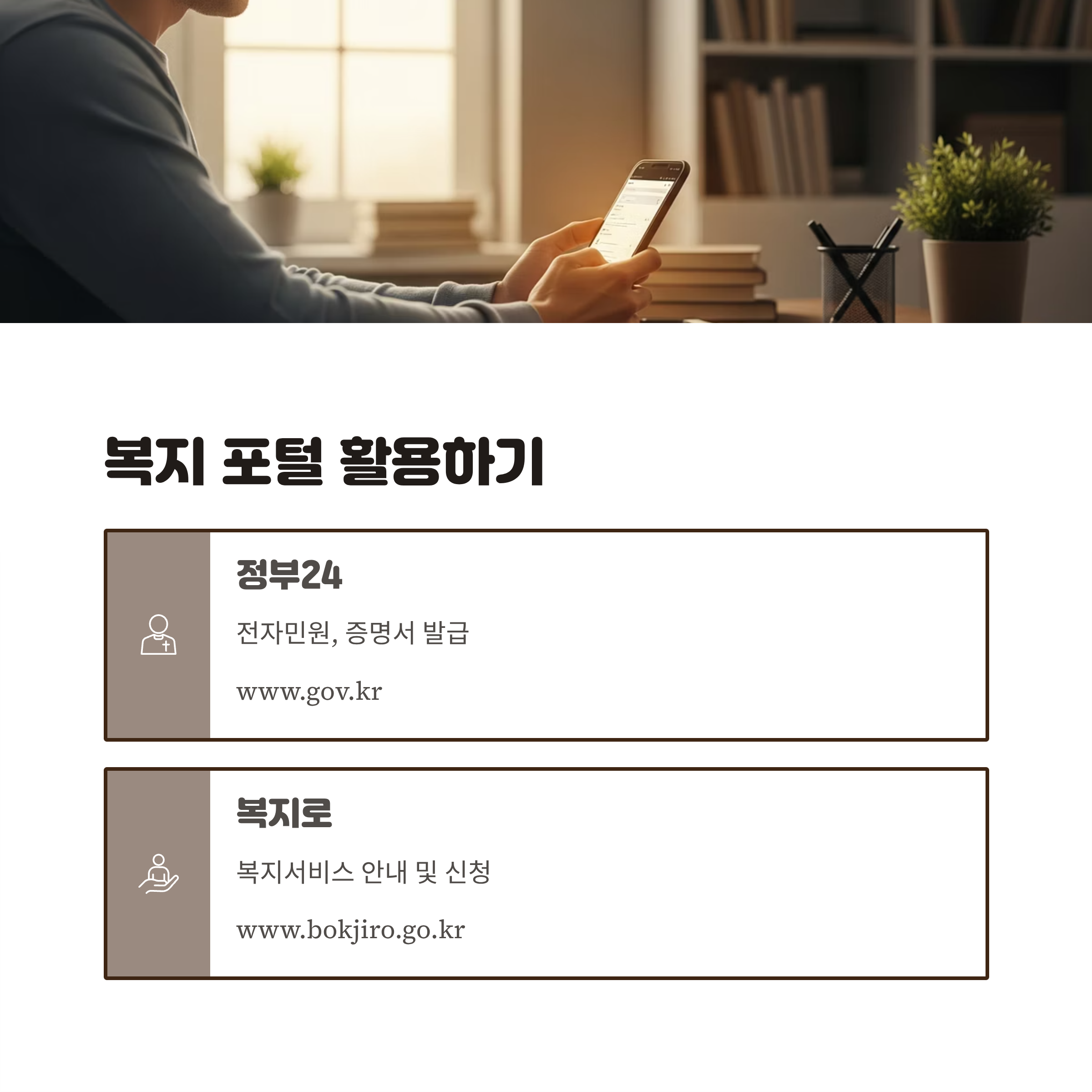 정부24, 복지로, 국민비서 서비스 등 통합포털을 통해 손쉽게 확인하고 신청할 수 있어요.