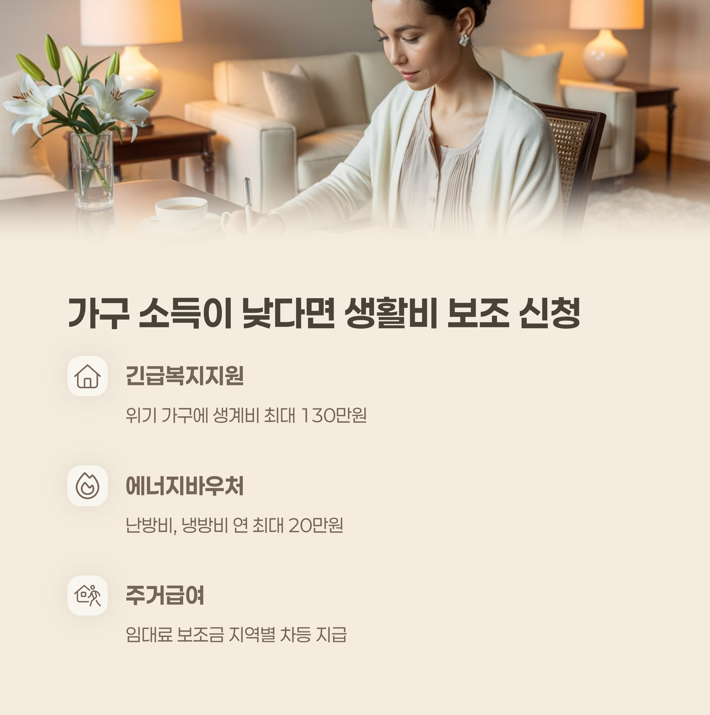 가구 소득이 낮다면, 생활비 보조도 신청 가능