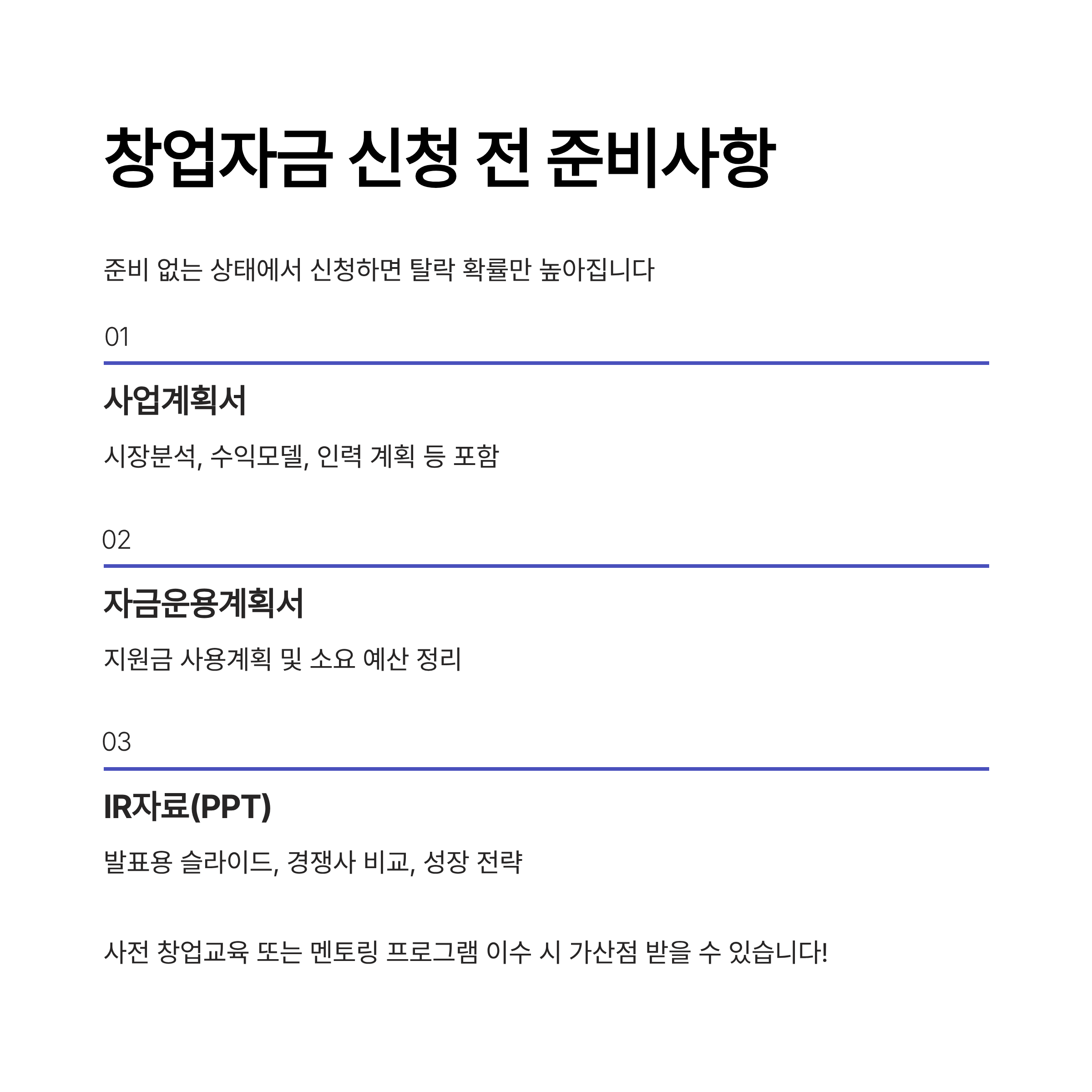 - 사업계획서 – 시장분석, 수익모델, 인력 계획 등 포함