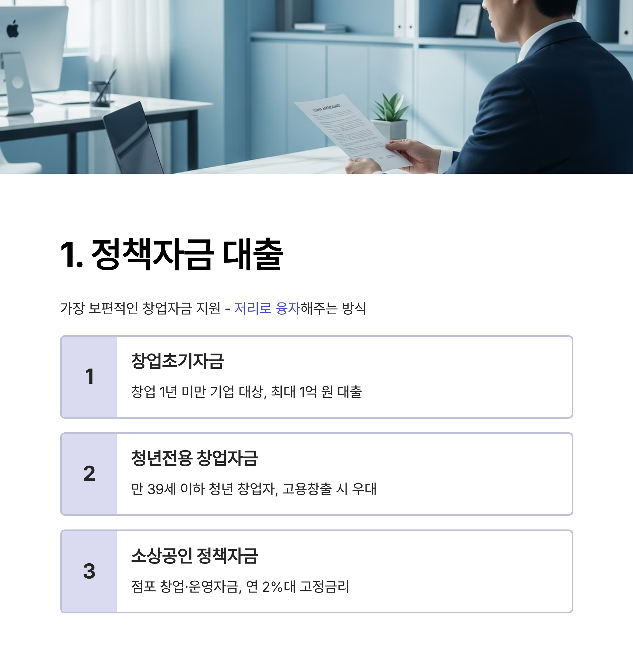 1. 정책자금 대출 – 가장 보편적인 창업자금 지원