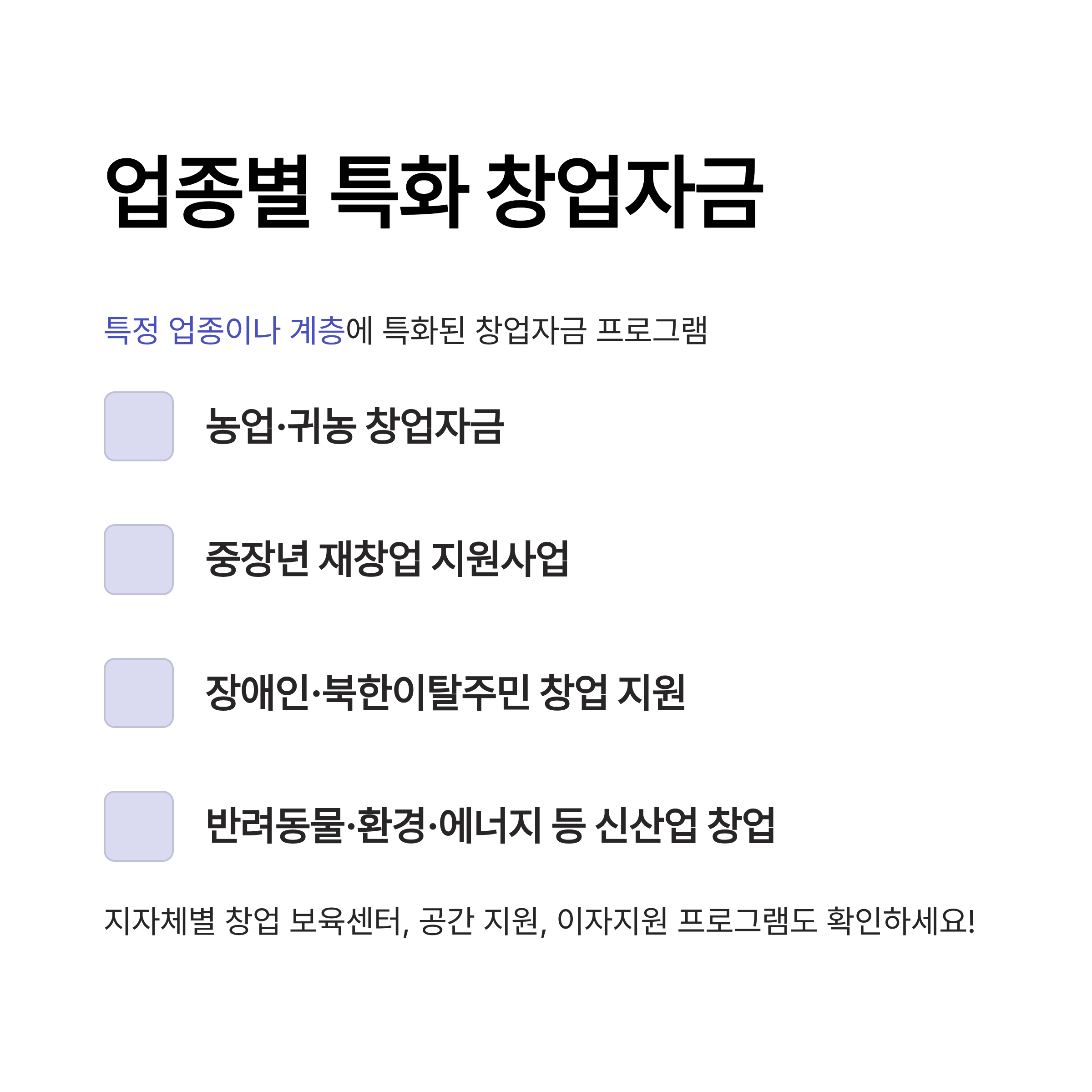 정부는 일반 창업 외에도 특정 업종이나 계층에 특화된