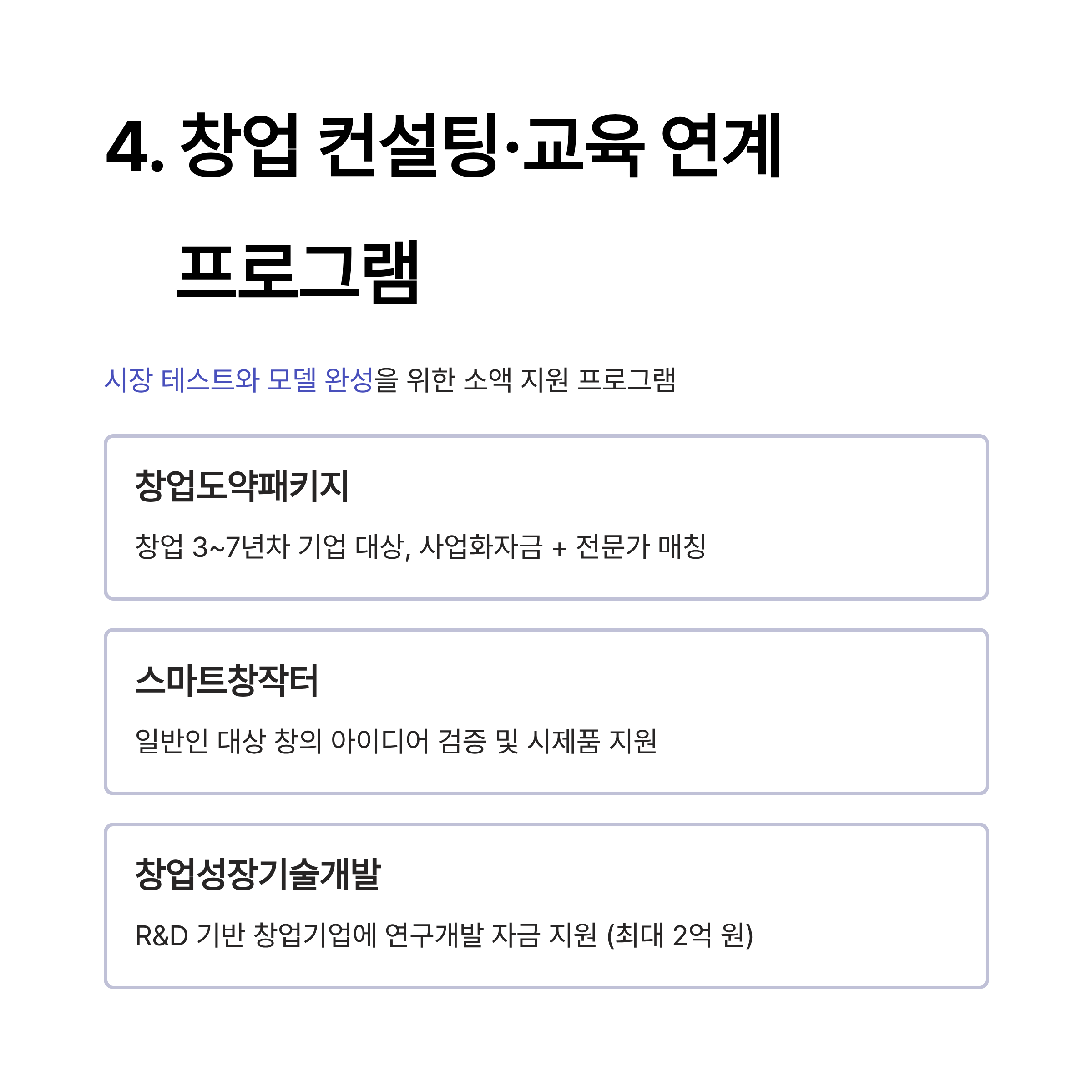 4. 창업 컨설팅·교육과 연계된 소액 지원 프로그램