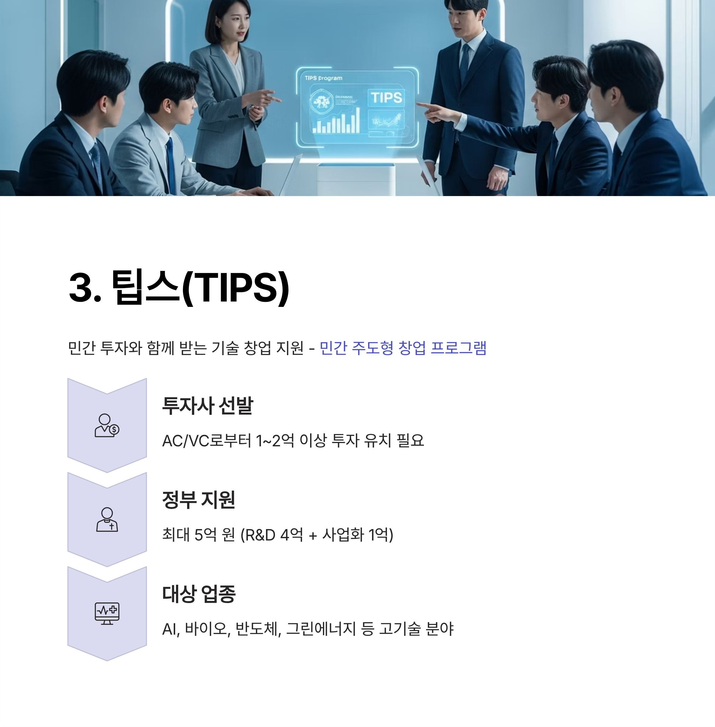 3. 팁스(TIPS) – 민간 투자와 함께 받는 기술 창업 지원