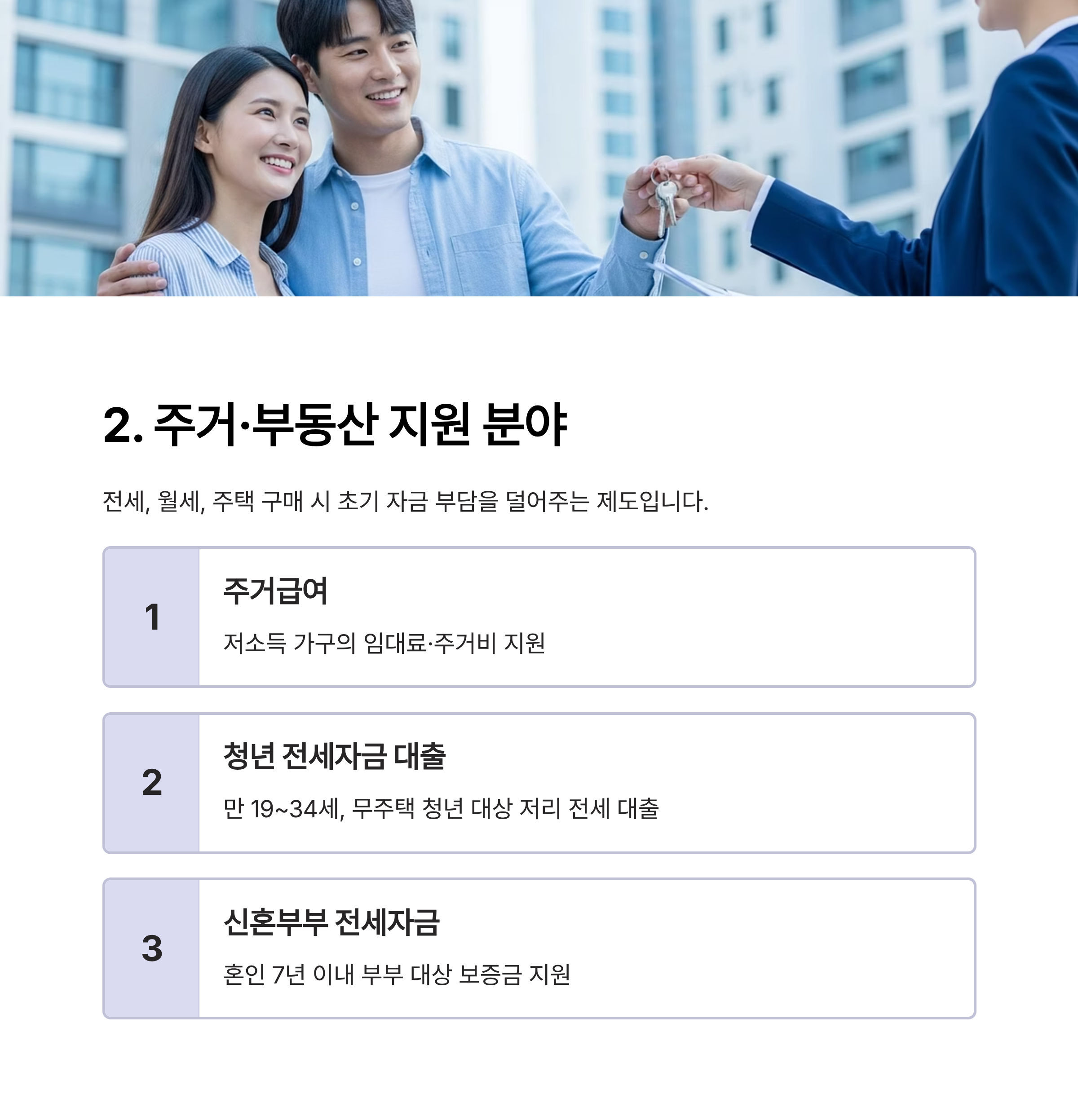 | 주거급여 | 저소득 가구의 임대료·주거비 지원 |