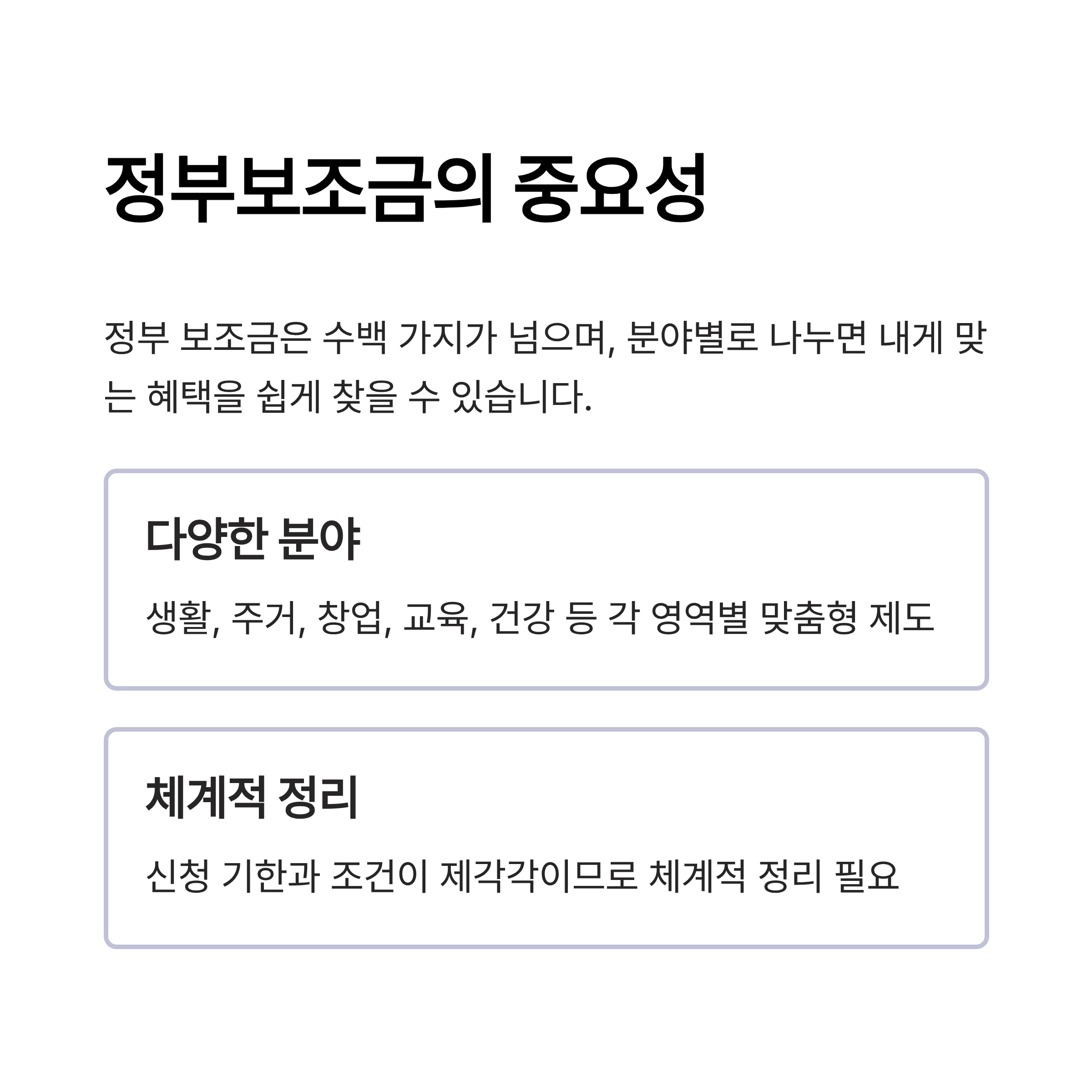 이번 글에서는 주요 정부보조금을 분야별로 구분해 한눈에 볼 수 있도록
