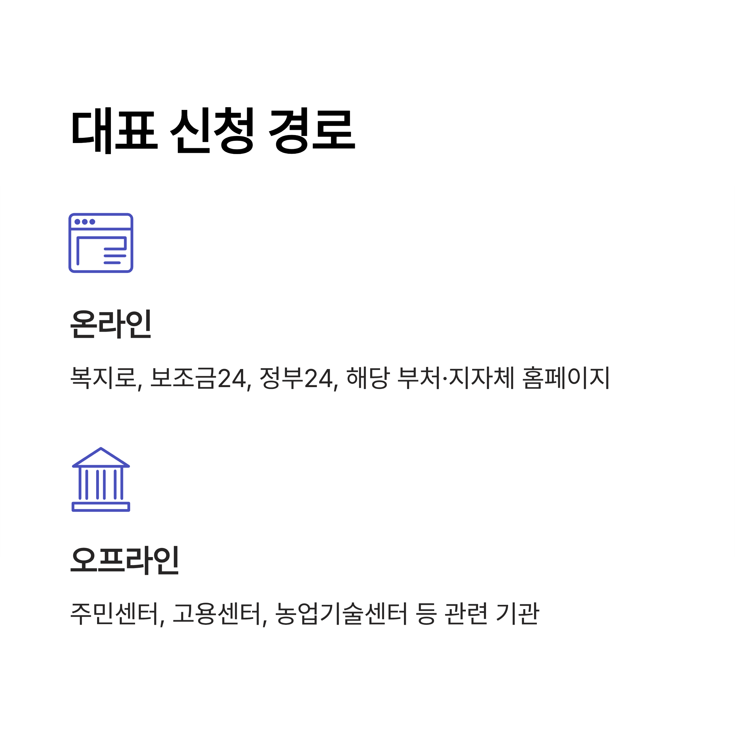 - 주민센터, 고용센터, 농업기술센터 등 관련 기관
