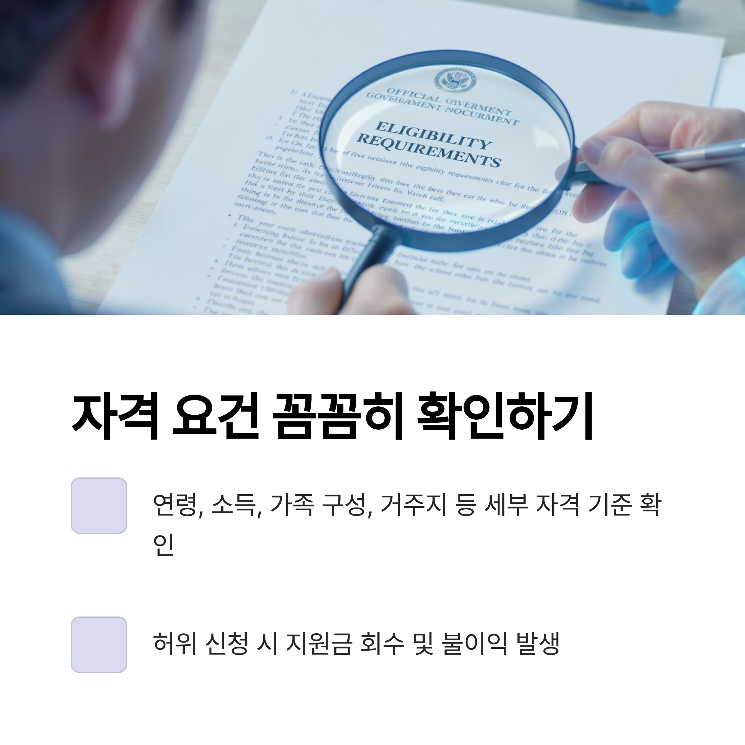 자격요건을 한 번 더 꼼꼼히 확인하세요.