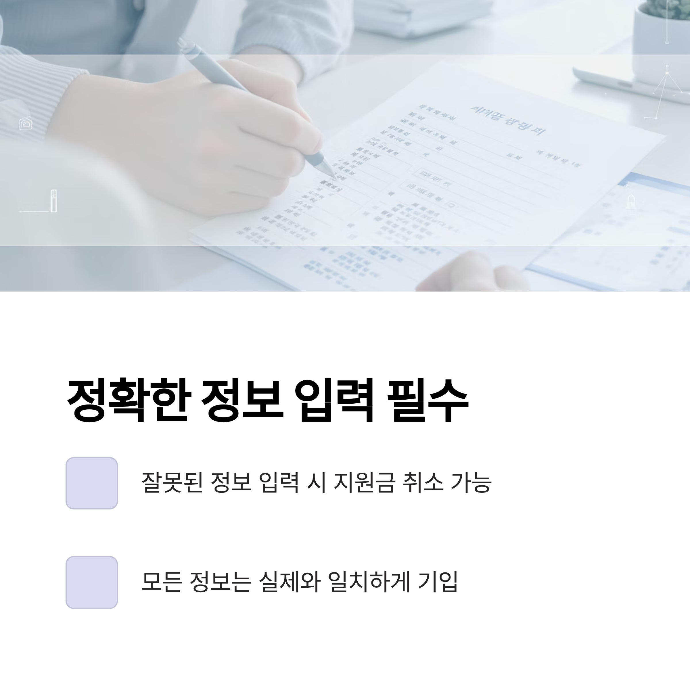 추후 지원금 회수나 불이익을 받을 수 있습니다.