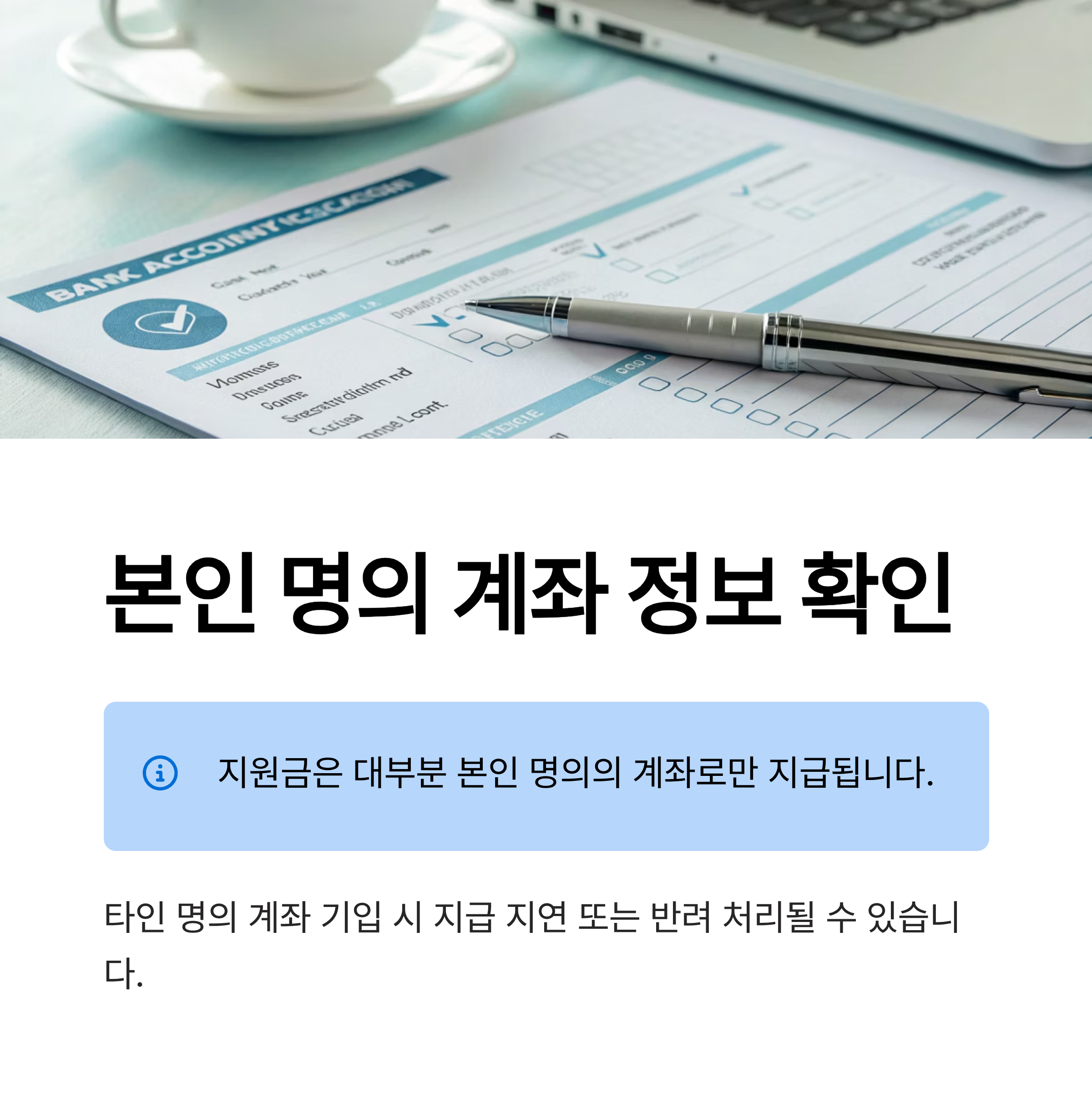 타인 명의의 계좌를 기입할 경우 지급이 지연되거나