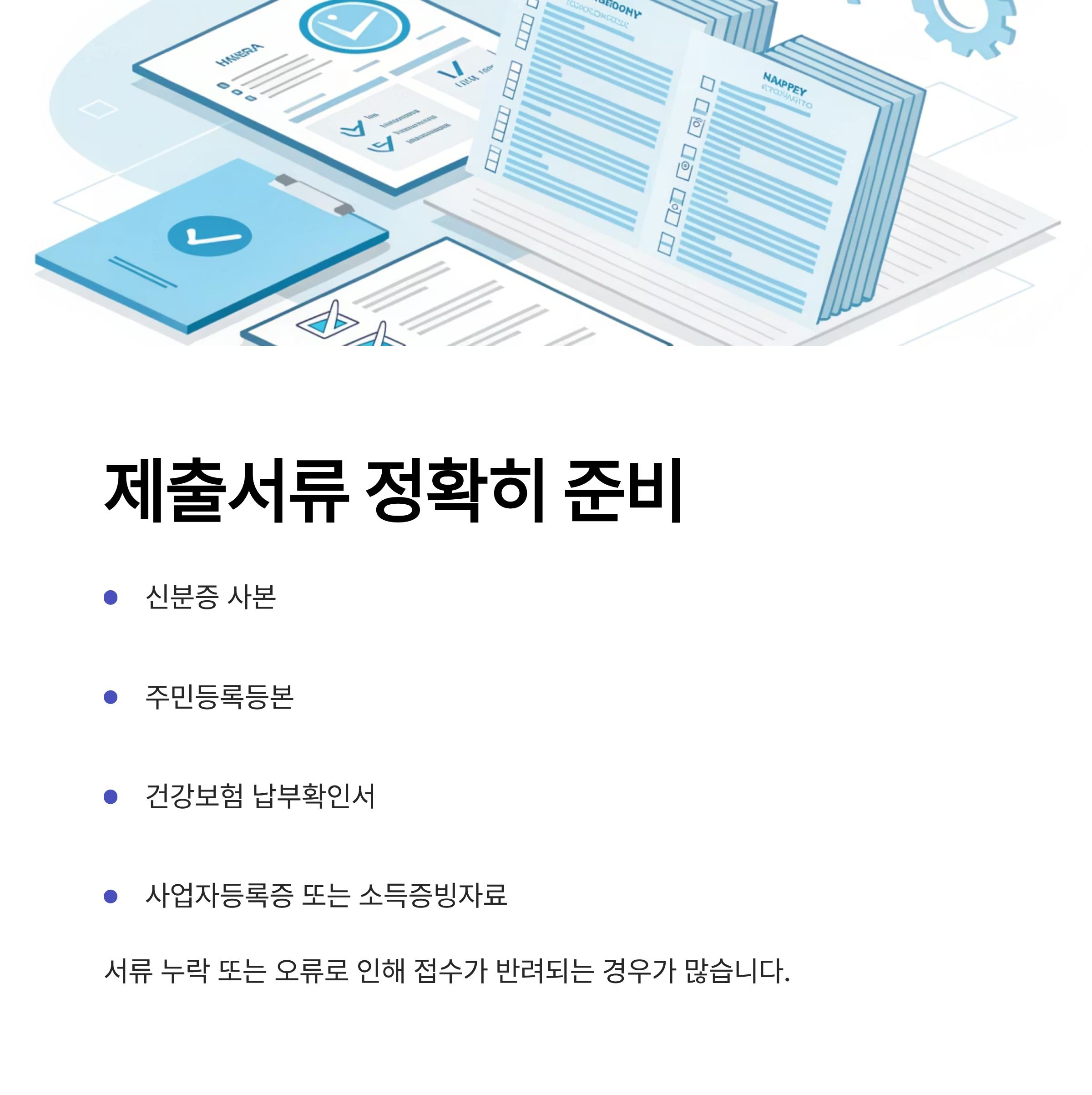 서류 누락 또는 오류로 인해 접수가 반려되는 경우가 많으니