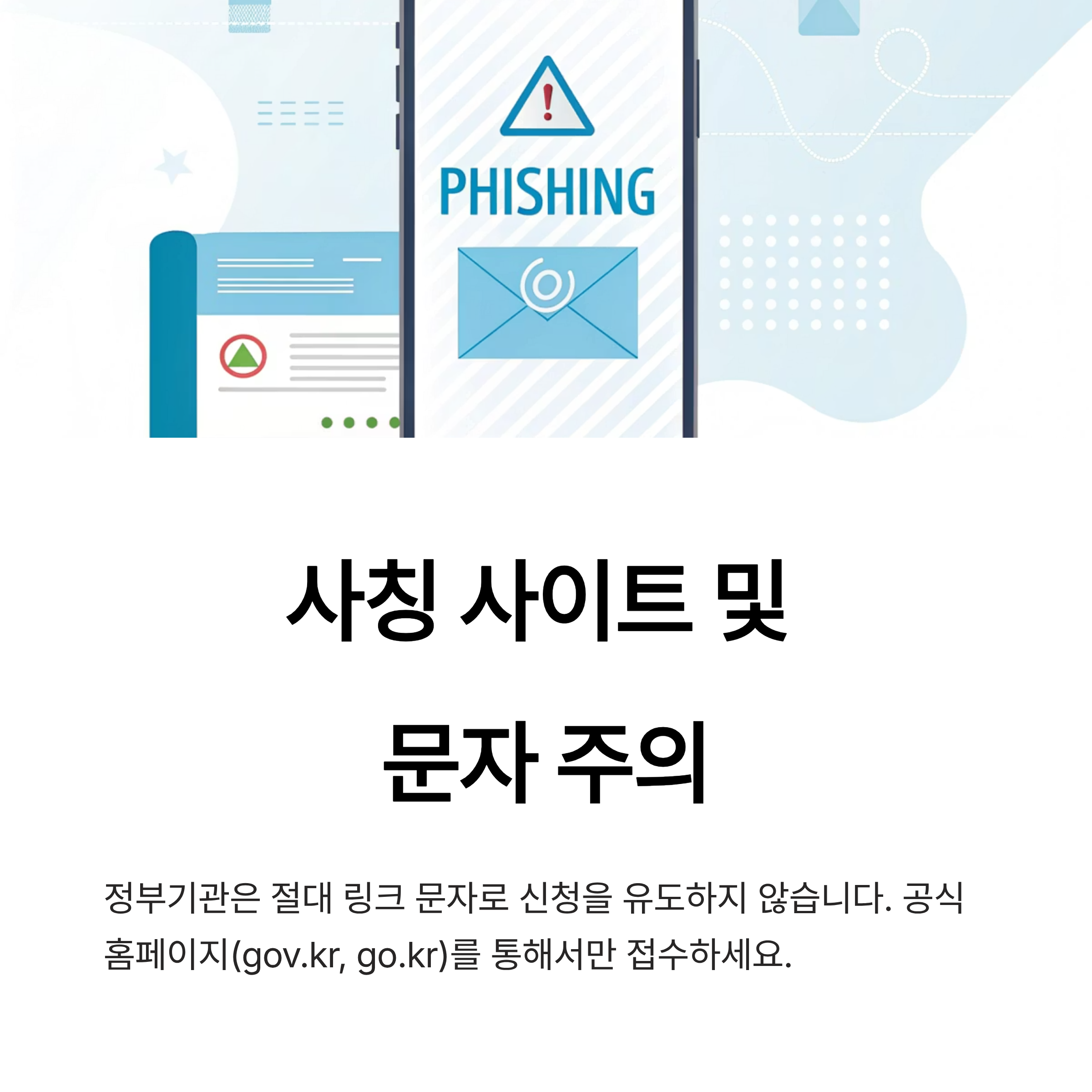 정부기관은 절대 링크 문자로 신청을 유도하지 않으며,